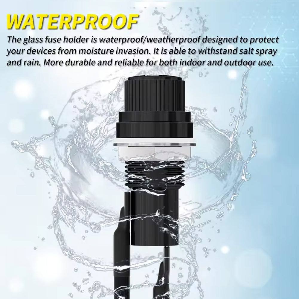 Superior Material: The glass fuse holder is designed with waterproof/weatherproof screw cap to protect your devices from moisture invasion. It is able to withstand salt spray and rain. More durable and reliable for both indoor and outdoor use