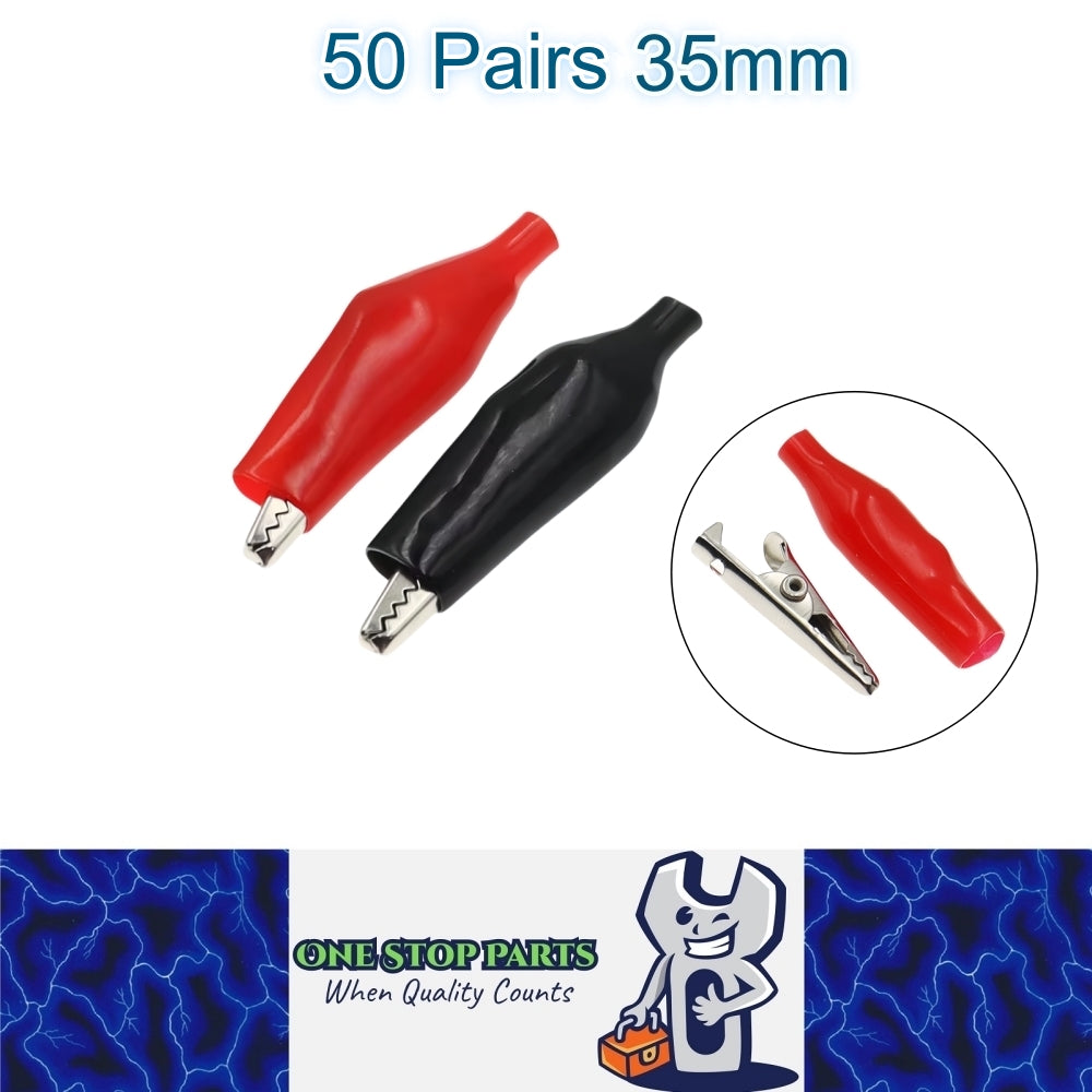 Here we have on offer is 50 Pairs Alligator Clips Clamps 35mm Black and Red Crocodile Alligator Jumper Electrical Test Clips .