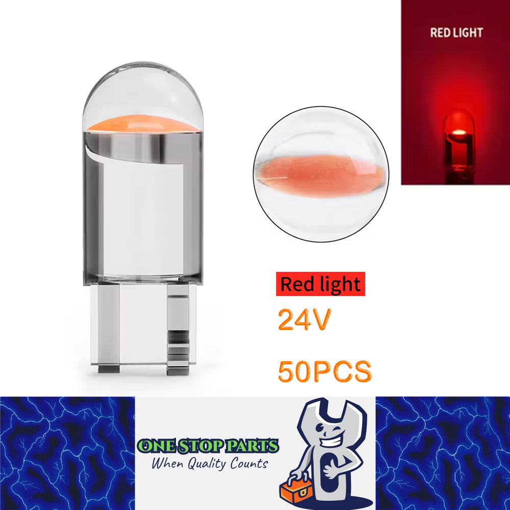 50 X 24V Red T10 Dome Head COB LED Globes Ideal for Dash Lights Parkers
