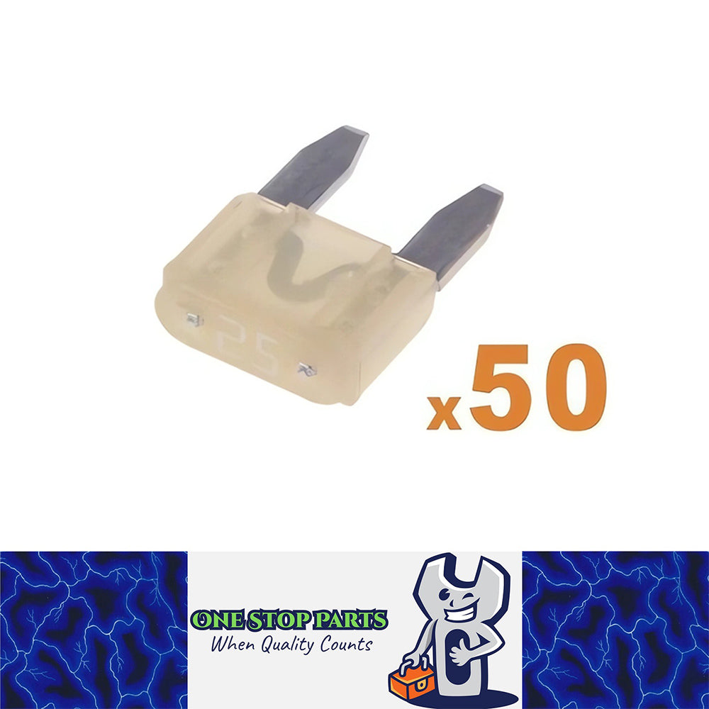 50 x 25amp Mini Blade Fuses White Clear Wedge Fuses 50pc Pack BULK BUY