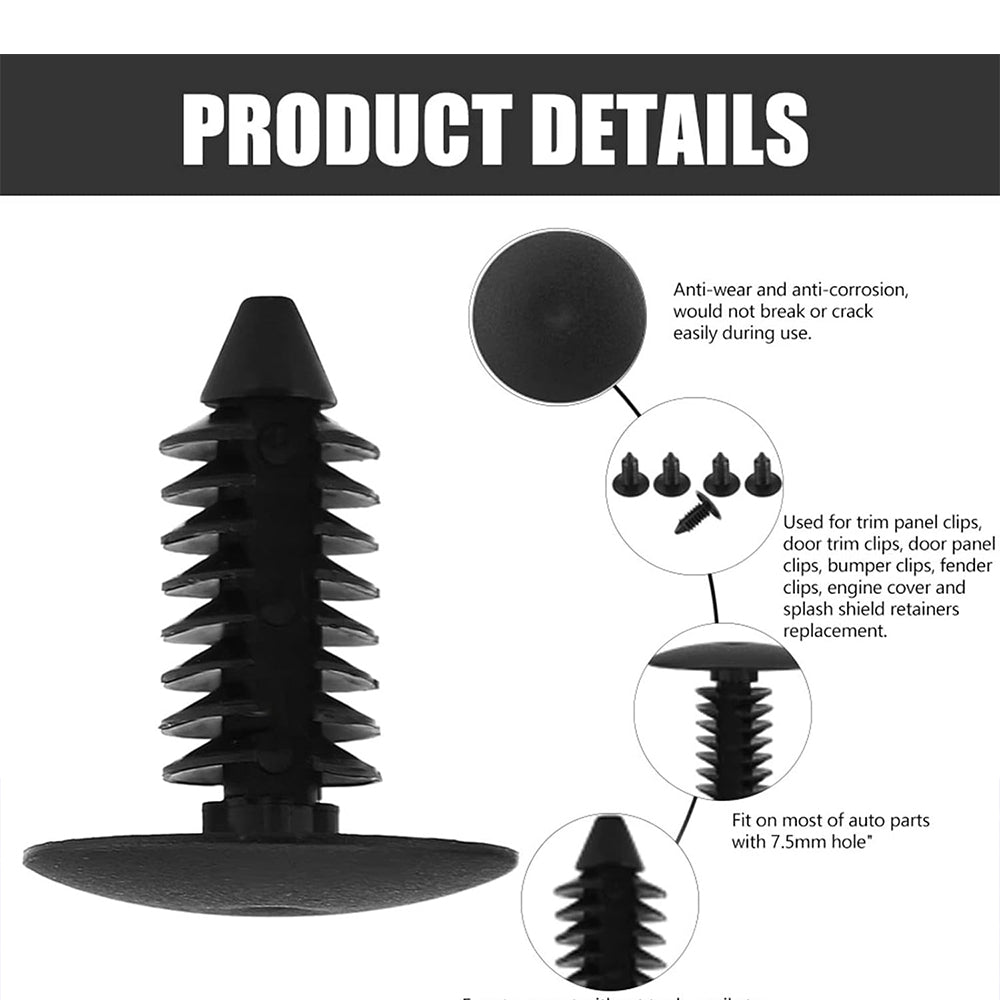 50 x 9mm Mixed Plastic Body Rivets Fasteners Suits 8mm Hole with 20mm Head 50pcs