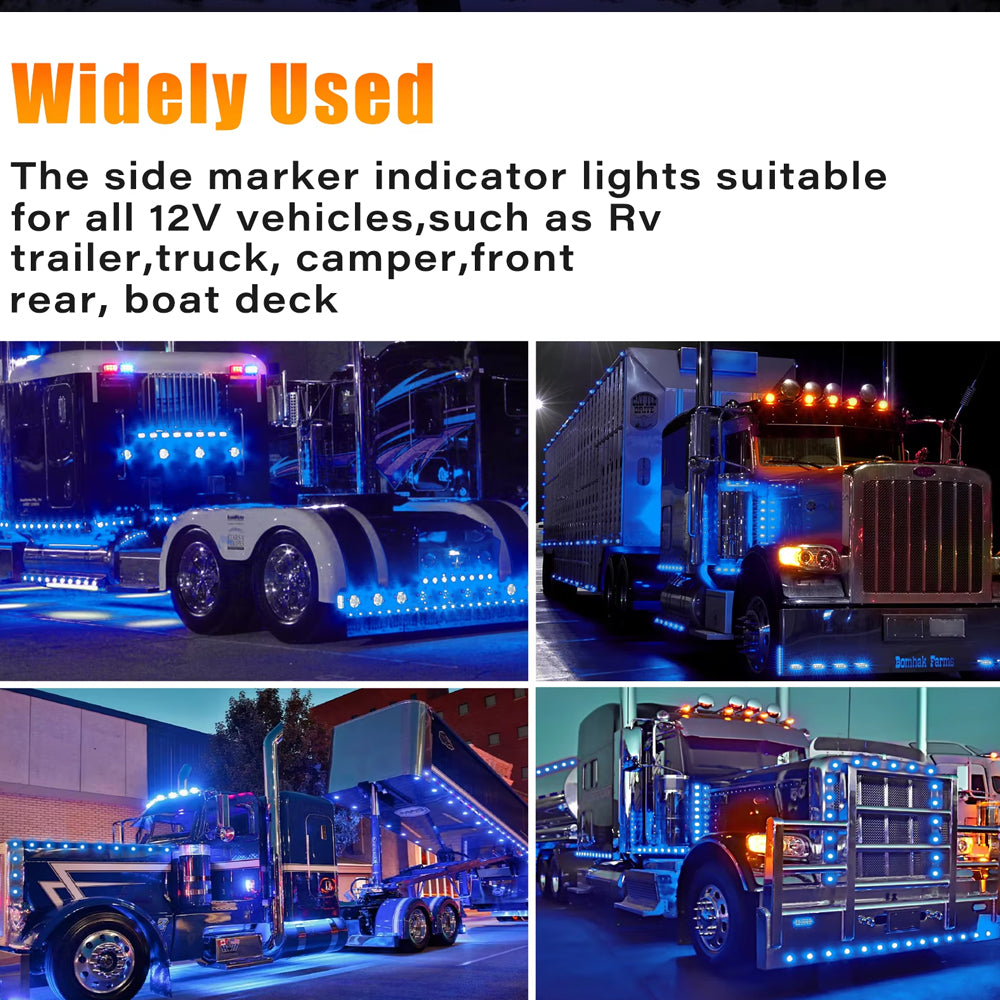 【Wide Application】The side marker lights suitable for all 12V vehicles,such as truck, caravan, bus, pickup, RV, lorry, SUV, Cabin Cars, etc.