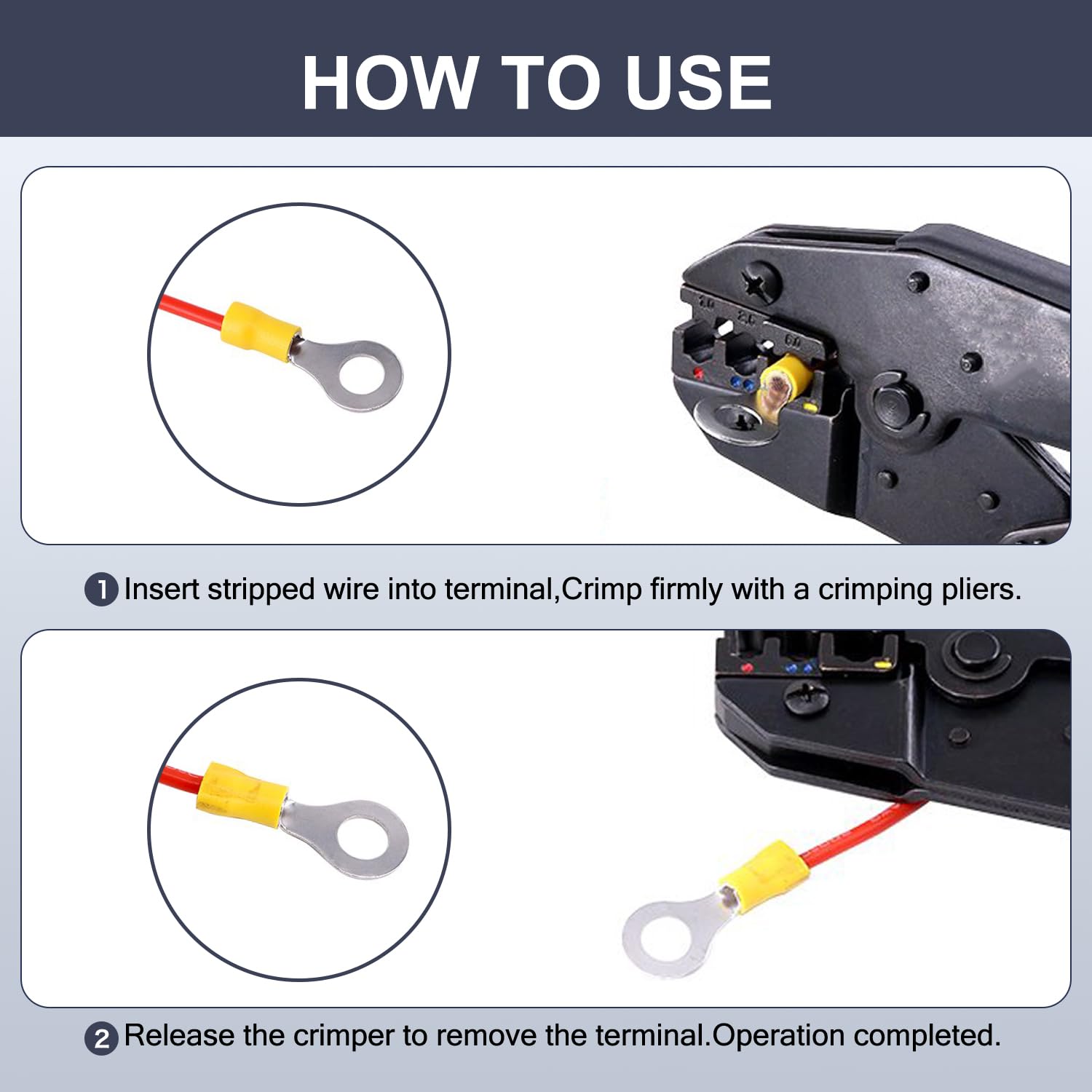 * Easy Installation: Our Ring Terminal eyelet connector can be installed by simply screwing the connector onto the battery post and splicing wire with crimping tools.