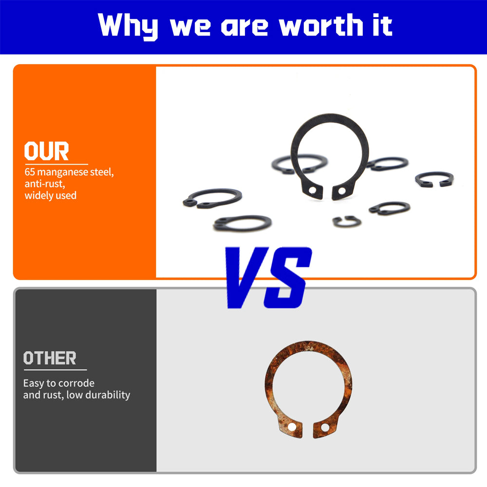 *Wide Application: Precision C-clips & retaining rings secure grooved mechanical components, mainly applicable for cylinders, automobiles, valves, electrical appliances,spraying, doors and windows, bearings, machinery to prevent bearing loosening