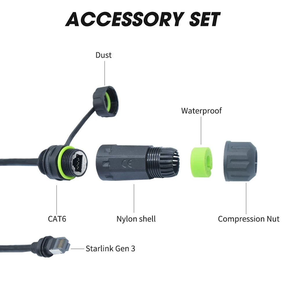 Built with a robust waterproof casing, this adapter is suitable for outdoor use. It can withstand various weather conditions, ensuring dependable operation and longevity in any environment.Equipped with an IP68 waterproof kit for regular ethernet cables, the starlink adapter ethernet ensures reliable, moisture and dirt-resistant connections for both indoor and outdoor installations