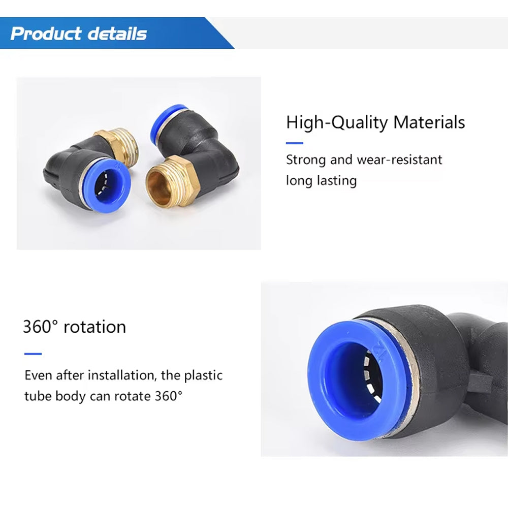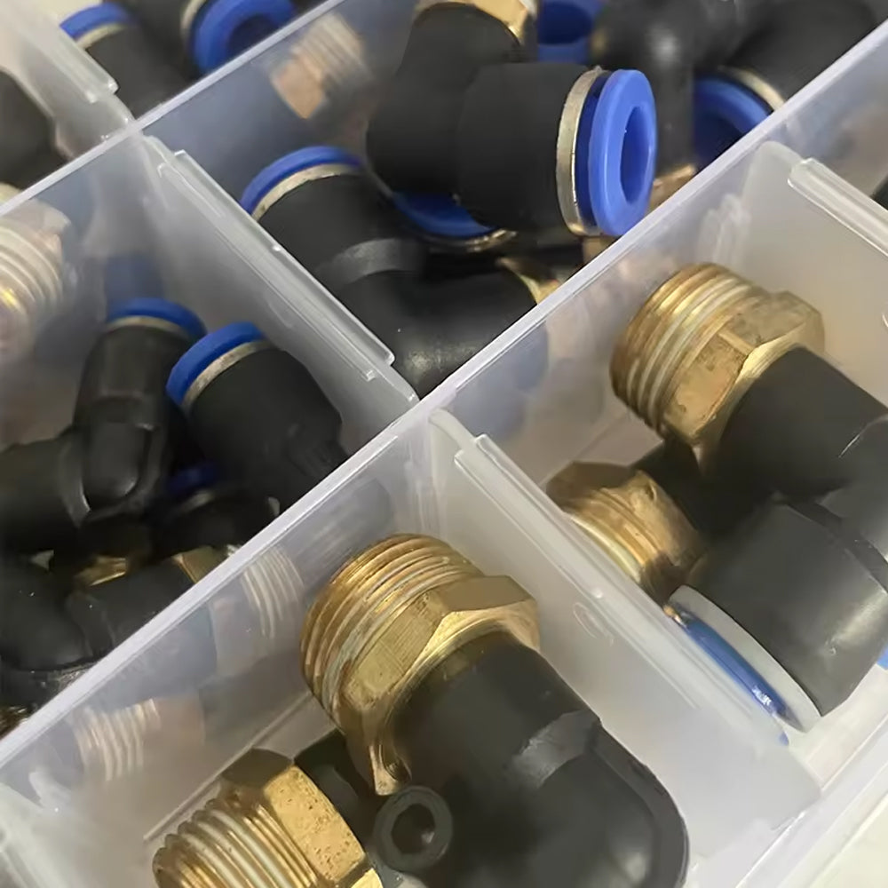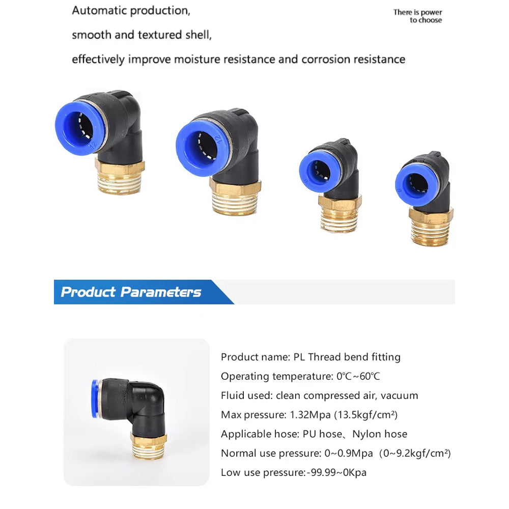 56pcs Air Pneumatic Bend Fittings PL Series Trachea Elbow Connectors PL4 to PL12