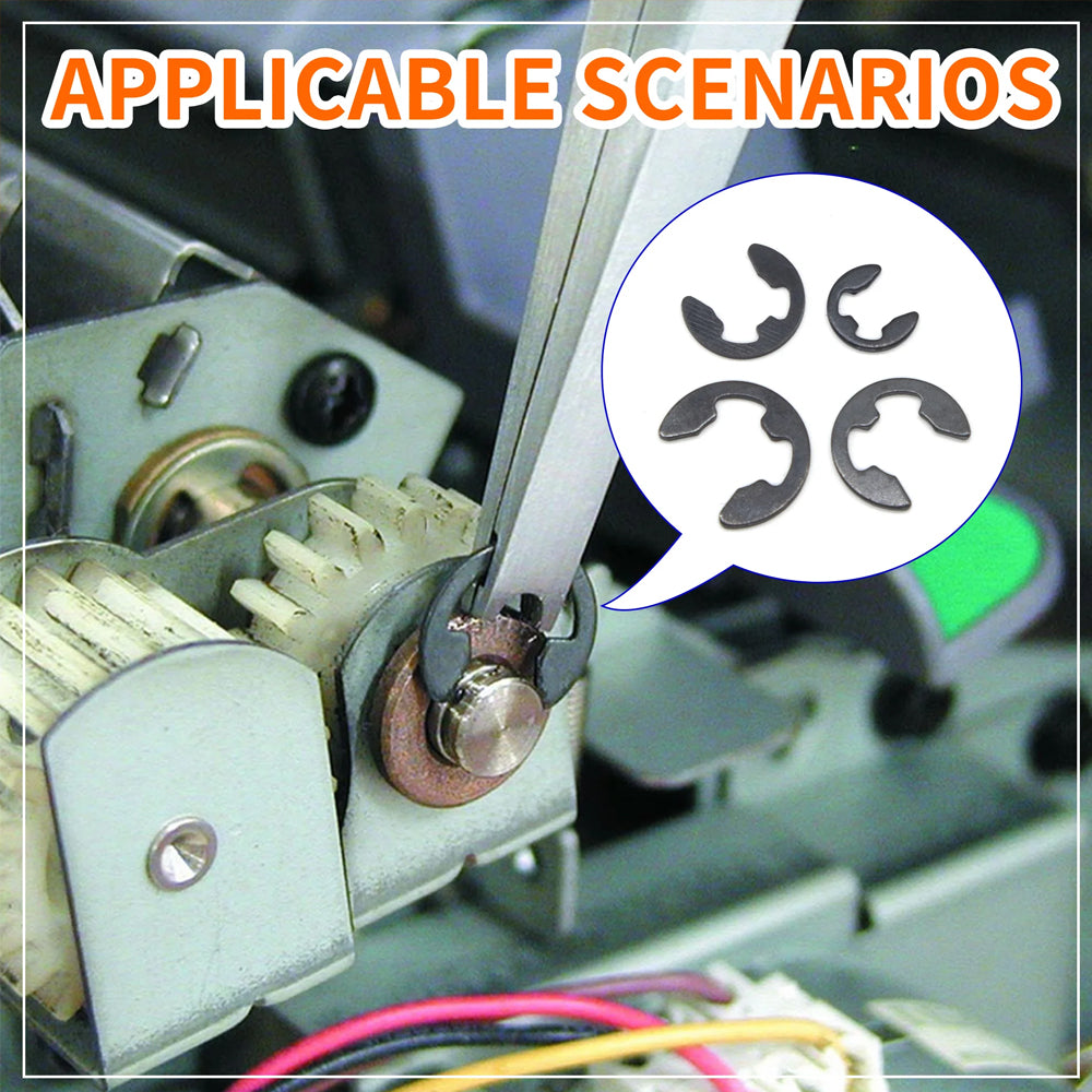 Wide Application: Precision E-clips & retaining rings secure grooved mechanical components including bearings, gears, pulleys, and axleshaft assemblies.