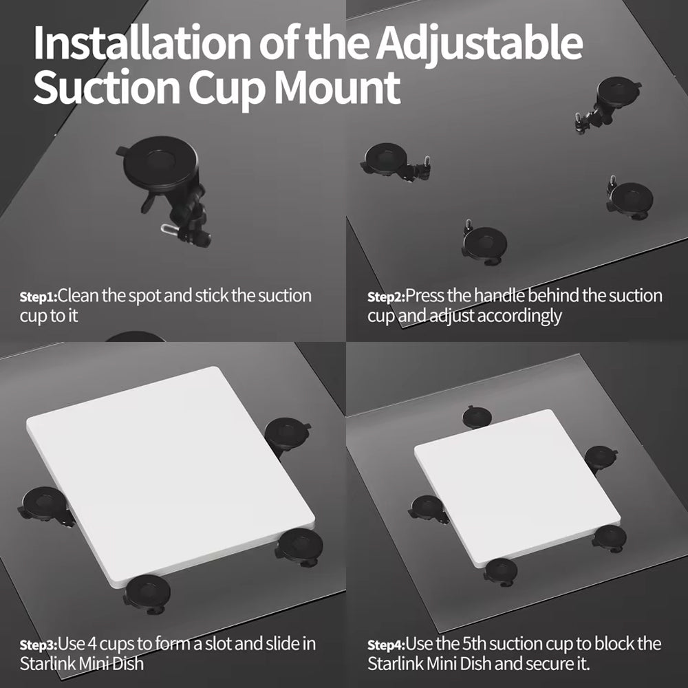 *Compatibility: This Starlink Mini Car Mount is specifically designed for the Starlink Mini dish antenna with 5 suction cups for sunroof mounting.