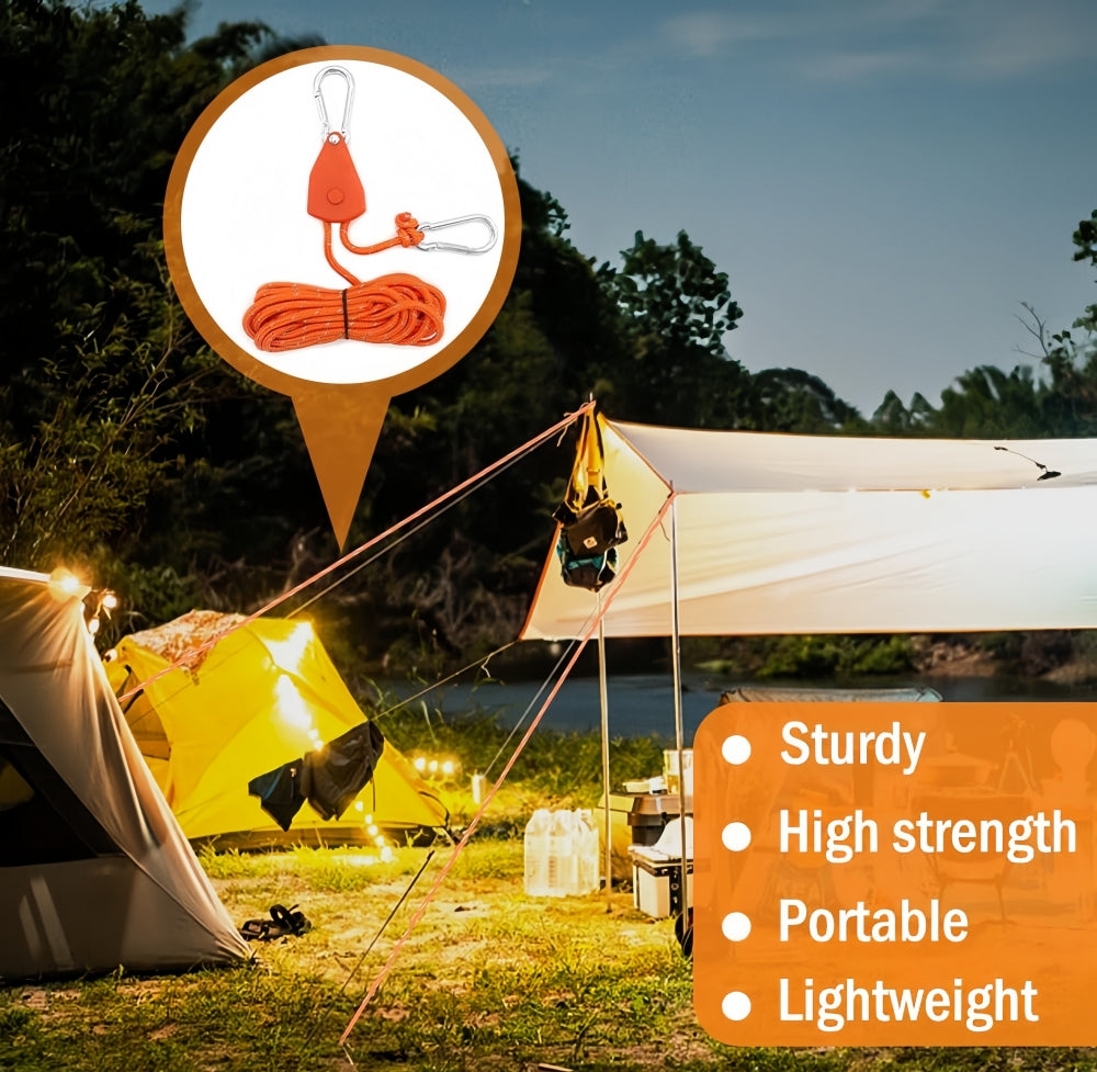 * Safety Design: Each rope ratchet has a woven reflective thread. Under the illumination of objects such as moonlight and flashlights, the ropes ratchet can be clearly visible even in the dark to protect people from tripping at night.