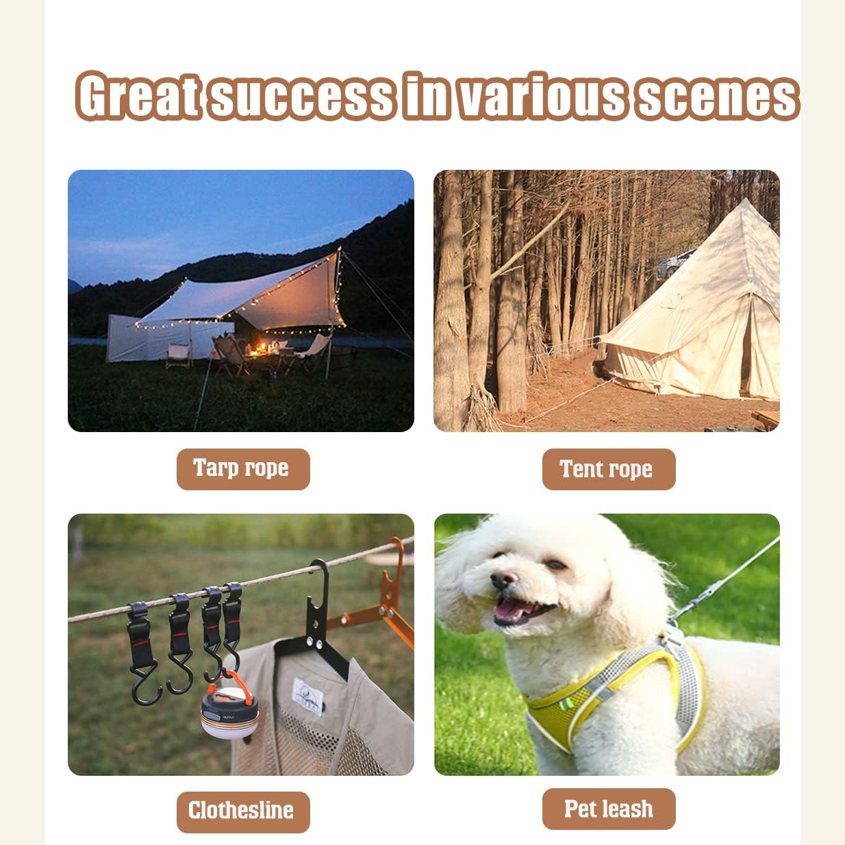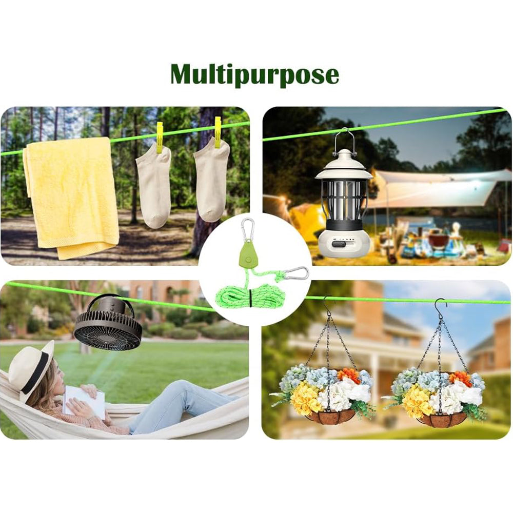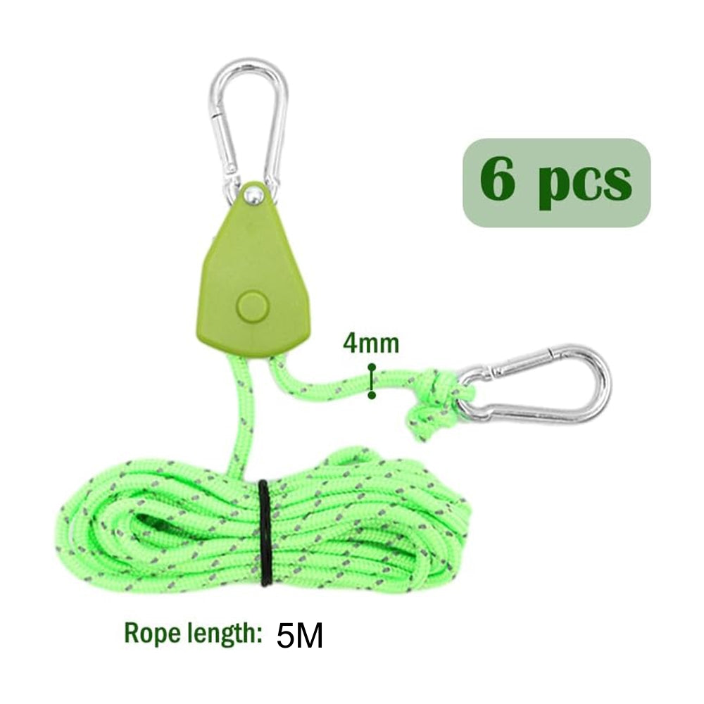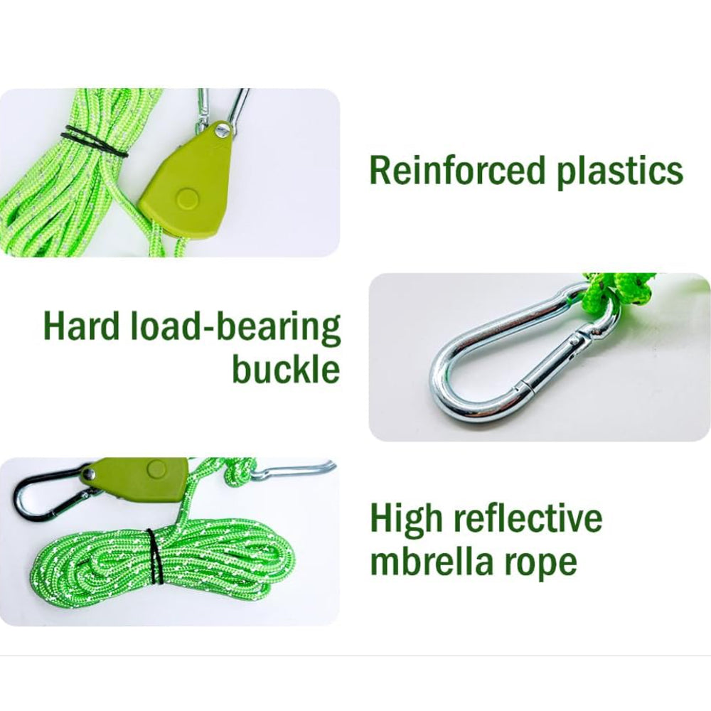 * Safety Design: Each rope ratchet has a woven reflective thread. Under the illumination of objects such as moonlight and flashlights, the ropes ratchet can be clearly visible even in the dark to protect people from tripping at night.