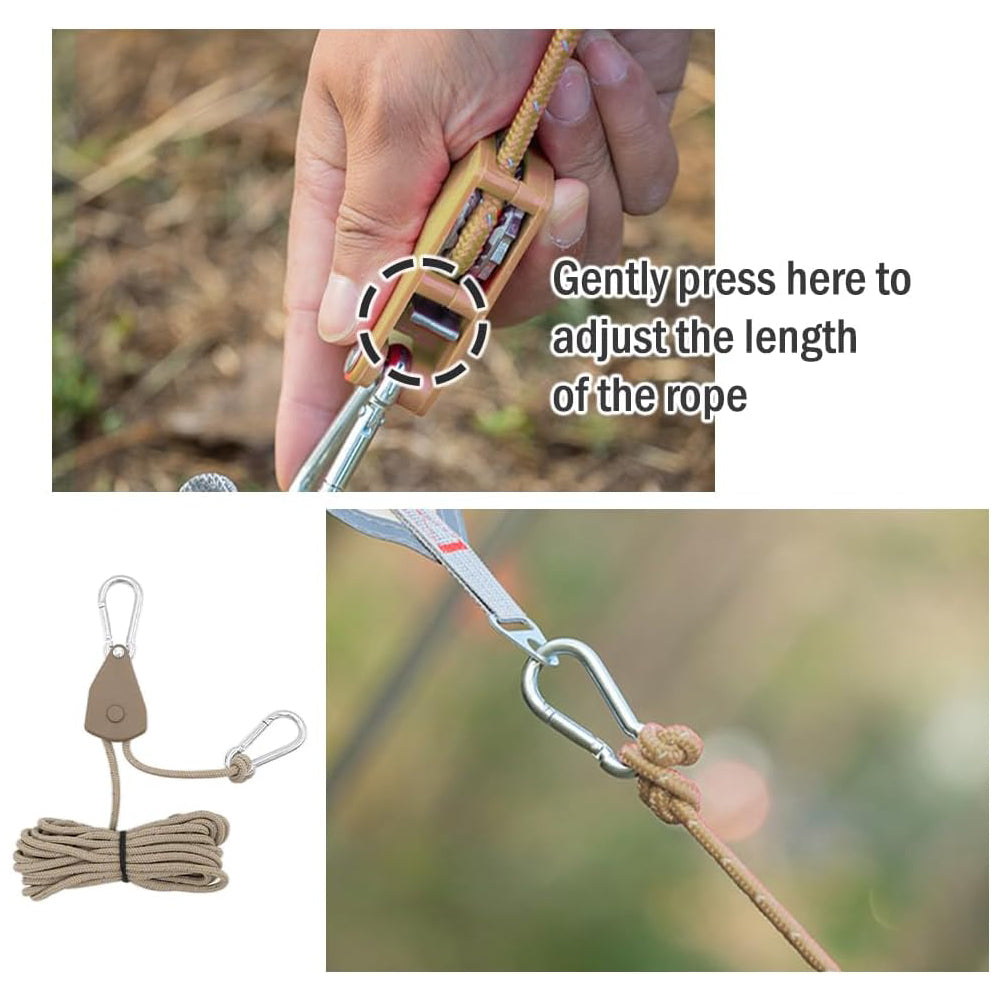 * Safety Design: Each rope ratchet has a woven reflective thread. Under the illumination of objects such as moonlight and flashlights, the ropes ratchet can be clearly visible even in the dark to protect people from tripping at night.