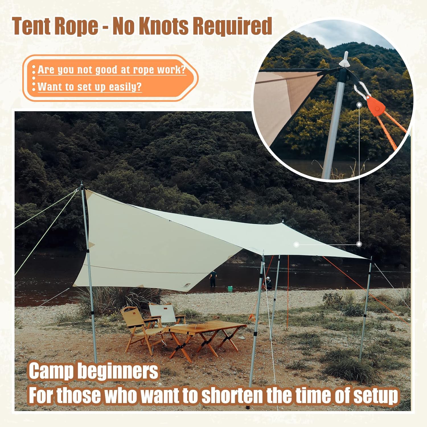 * Safety Design: Each rope ratchet has a woven reflective thread. Under the illumination of objects such as moonlight and flashlights, the ropes ratchet can be clearly visible even in the dark to protect people from tripping at night.