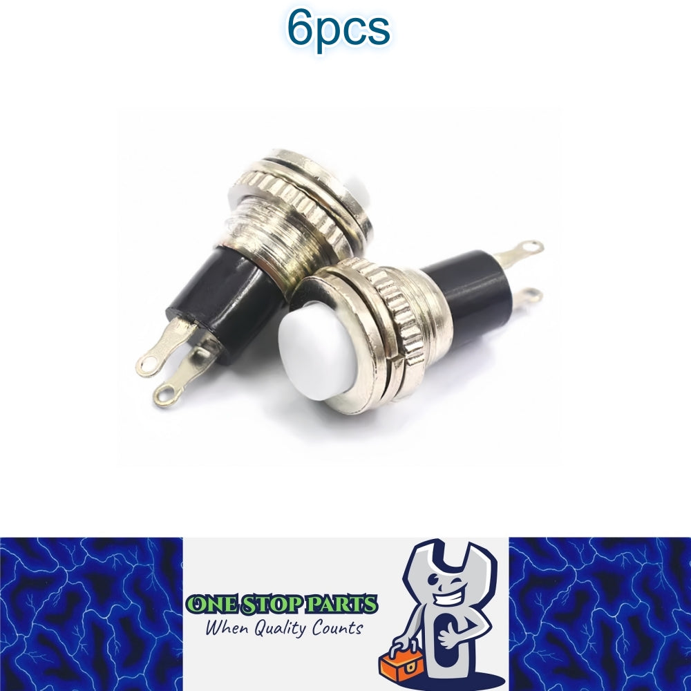 6 x White Push Button Switches Panel Mount 10mm Momentary OFF/ON SPST Switches