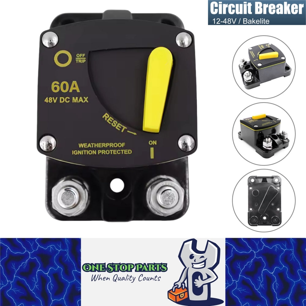 60A Circuit Breaker 12V-48V DC Waterproof Manual Reset for Marine Boat RV Yatch