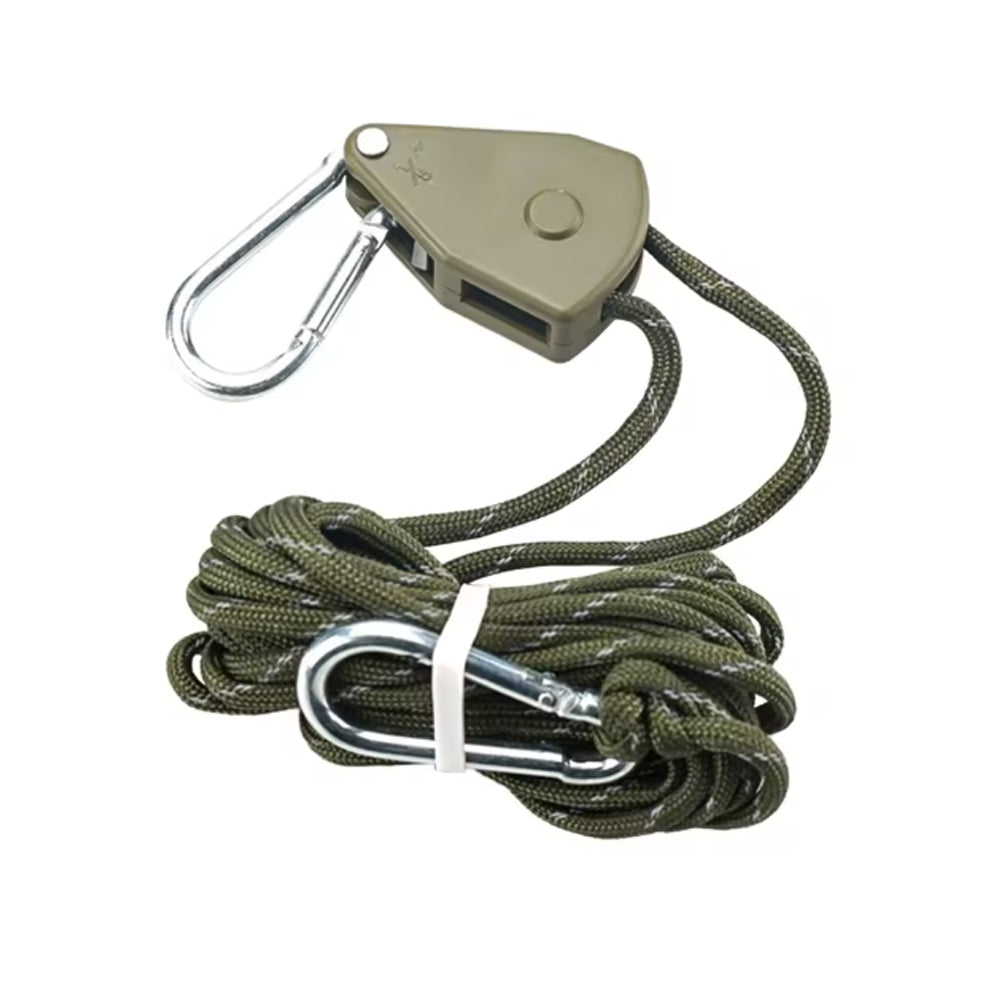 * Widely Used: Rope ratchet are an ideal choice for hanging tents, carbon filters, ventilation equipment, and lighting fixtures. Adjustable rope hangers are also very suitable for hanging plant lamps, filters, aquarium lamps, fans, flower pots, mining lamps, etc. And you also can use as tie down straps for your kayak and canoe,or any medium weight cargo to the roof rack of car,trailer.