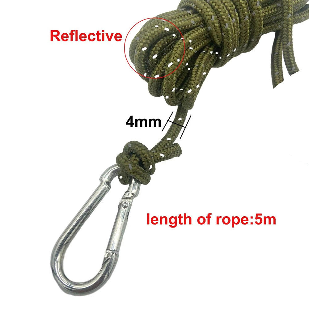 * Safety Design: Each rope ratchet has a woven reflective thread. Under the illumination of objects such as moonlight and flashlights, the ropes ratchet can be clearly visible even in the dark to protect people from tripping at night.