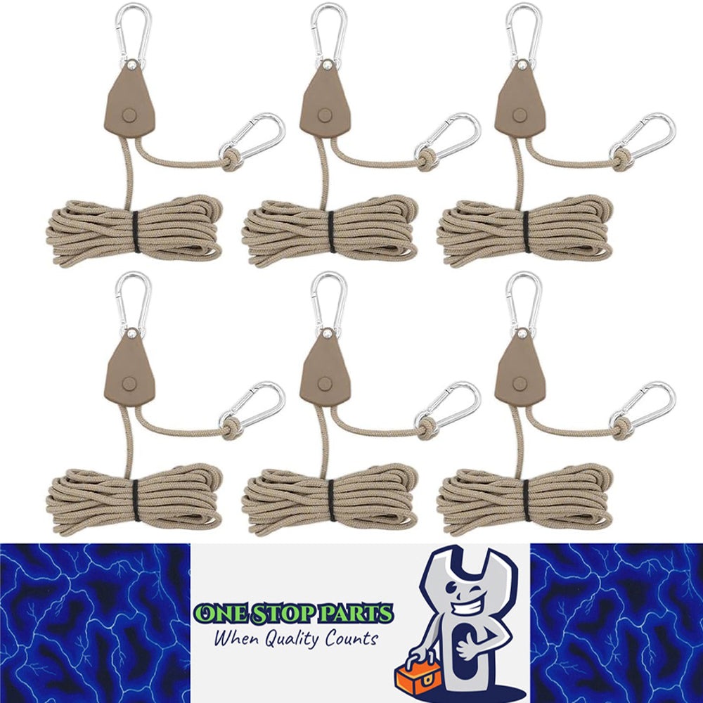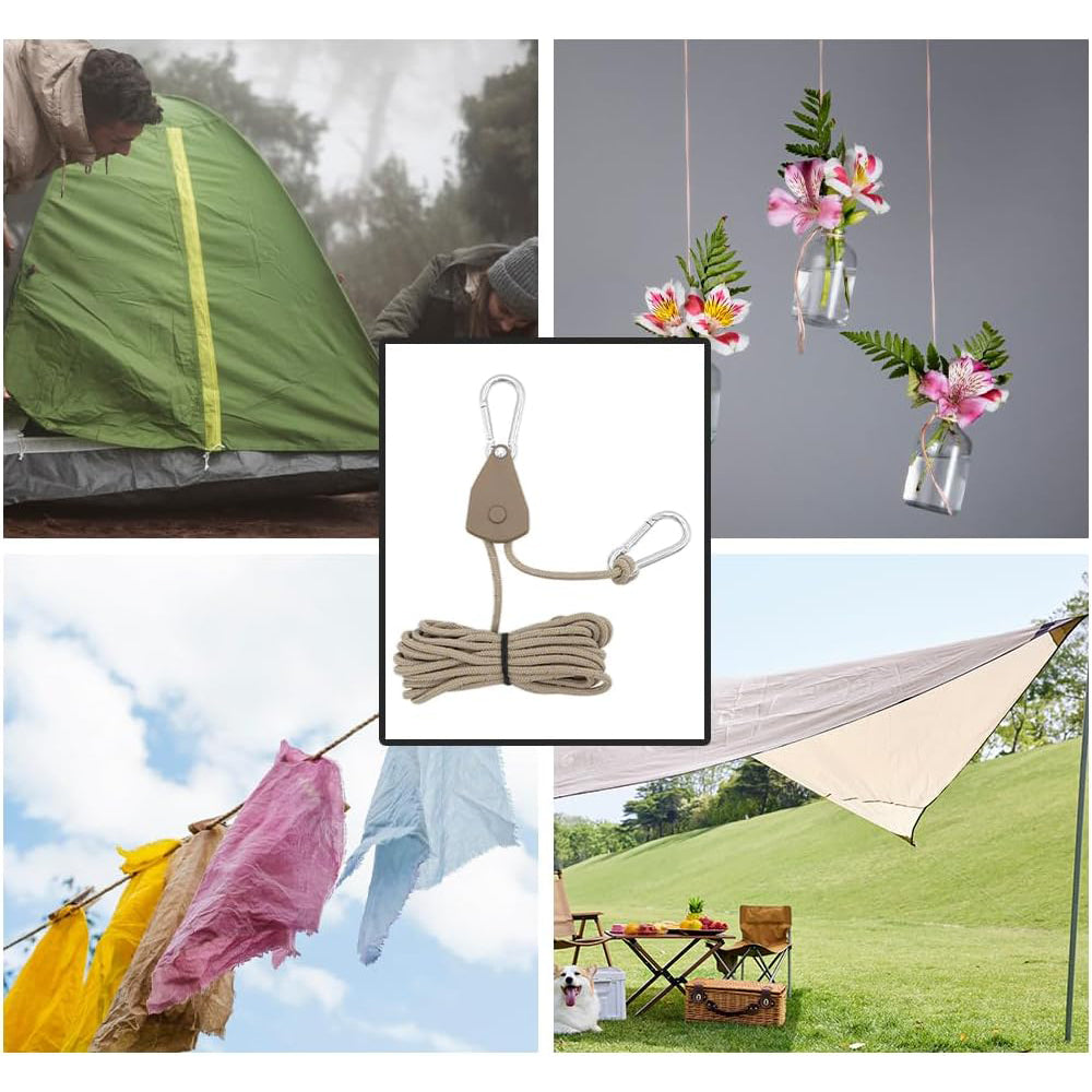 * Widely Used: Rope ratchet are an ideal choice for hanging tents, carbon filters, ventilation equipment, and lighting fixtures. Adjustable rope hangers are also very suitable for hanging plant lamps, filters, aquarium lamps, fans, flower pots, mining lamps, etc. And you also can use as tie down straps for your kayak and canoe,or any medium weight cargo to the roof rack of car,trailer.