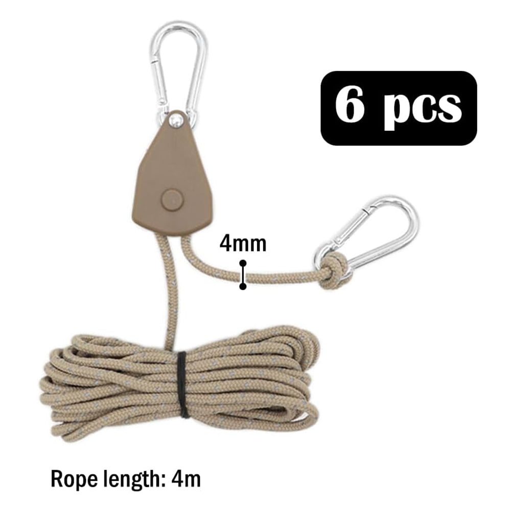 6x Khaki Reflective Camping Tent Rope Tie down Fastener Tensioner Ratchet Hanger