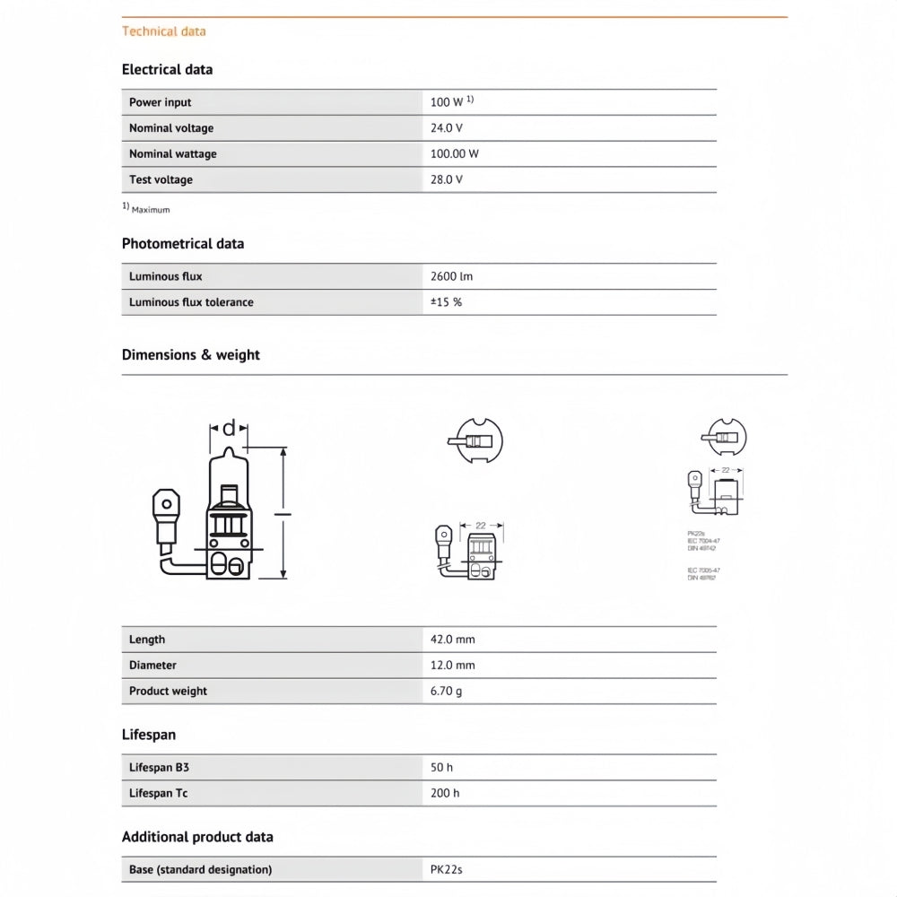 OSRAM 24V H3 100W Super Rallye 3200K Truck Original Headlight Halogen Bulb