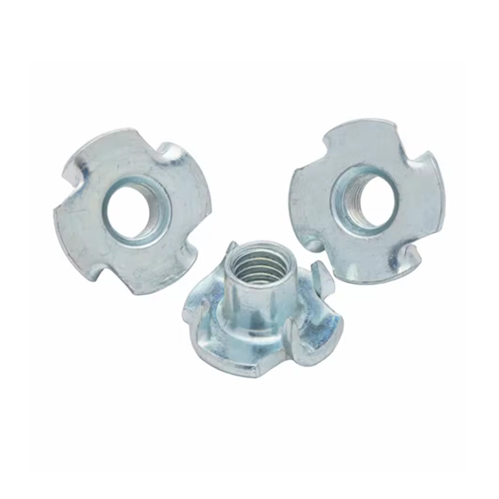 Practical Design: T-nut is a type of nut use for fasten a wood, leaving a flush surface; 4 Prongs ensure stable. Resembling a T in profile. The four-jaw design grips panels or materials firmly in place for a strong, reliable connection.