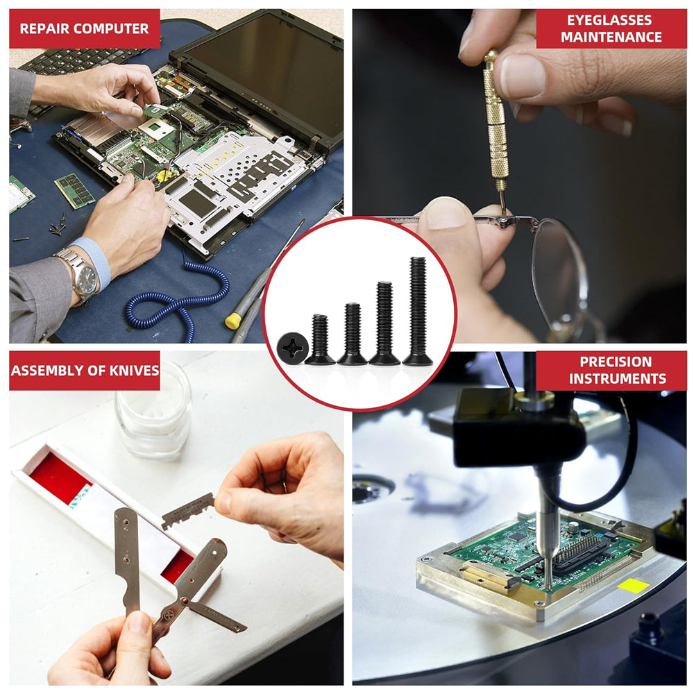 ✔【HIGH QUALITY】: These computer small screws are made of high quality carbon steel with surface oxidation black treatment. Long-term operation as an electronic accessory, high hardness, Anti-rust, anti-corrosion and durable.
