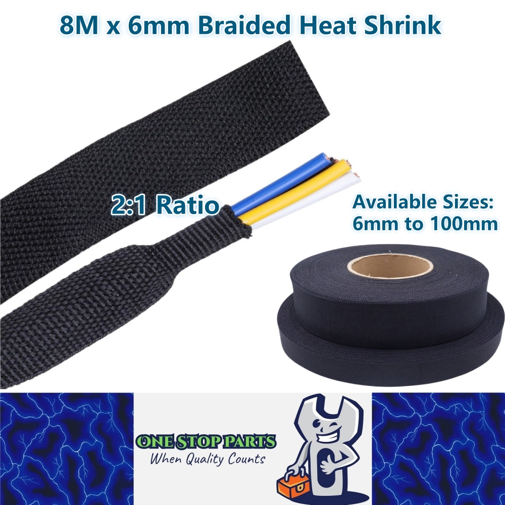 8M x 6mm 2:1 Black Heat Shrink Braided Sleeve Shrinks 6mm to 3mm Braided Sleeve