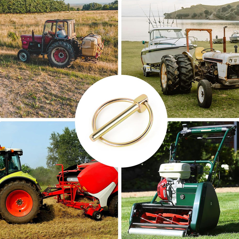 *High quality material: Our lynch pins are made of Carbon Steel and coated with yellow zinc on the surface, which has good corrosion resistance and wear resistance. Even in harsh agricultural environments, they can be used for a long time
