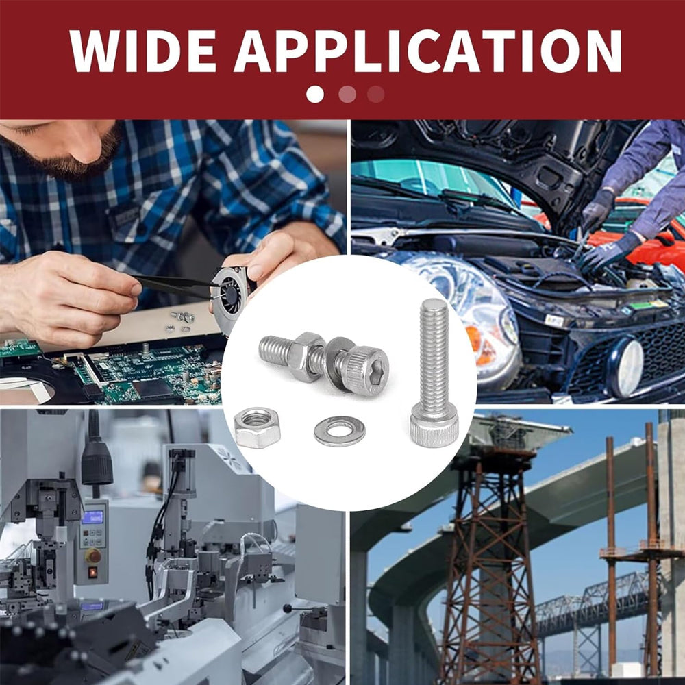 ✅【【PRODUCT NAME】 M2 M3 M4 M5 machine screw assortment kit, with matching hex nuts and bolts and flat lock washers, various sizes and precise threads for different usage. M2 bolts x 8mm/12mm/16mm/20mm, M3 bolts x 8mm/12mm/16mm/20mm, M4 bolts x 8mm/12mm/16mm/20mm, M5 bolts x 8mm/12mm/16mm/20mm.