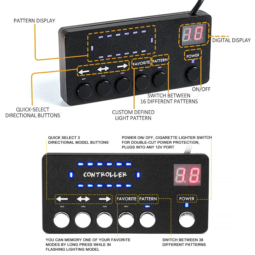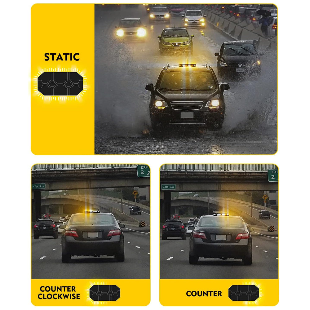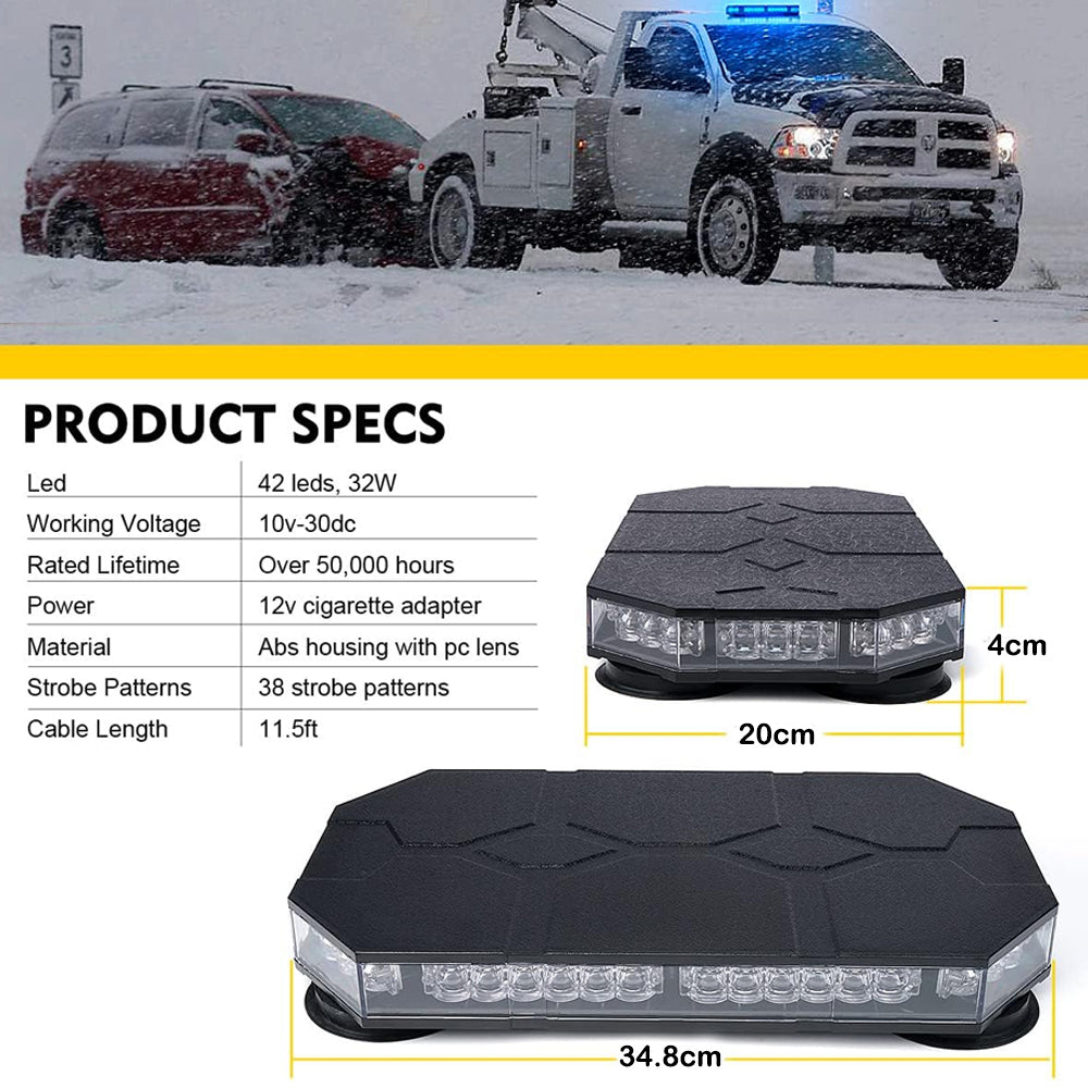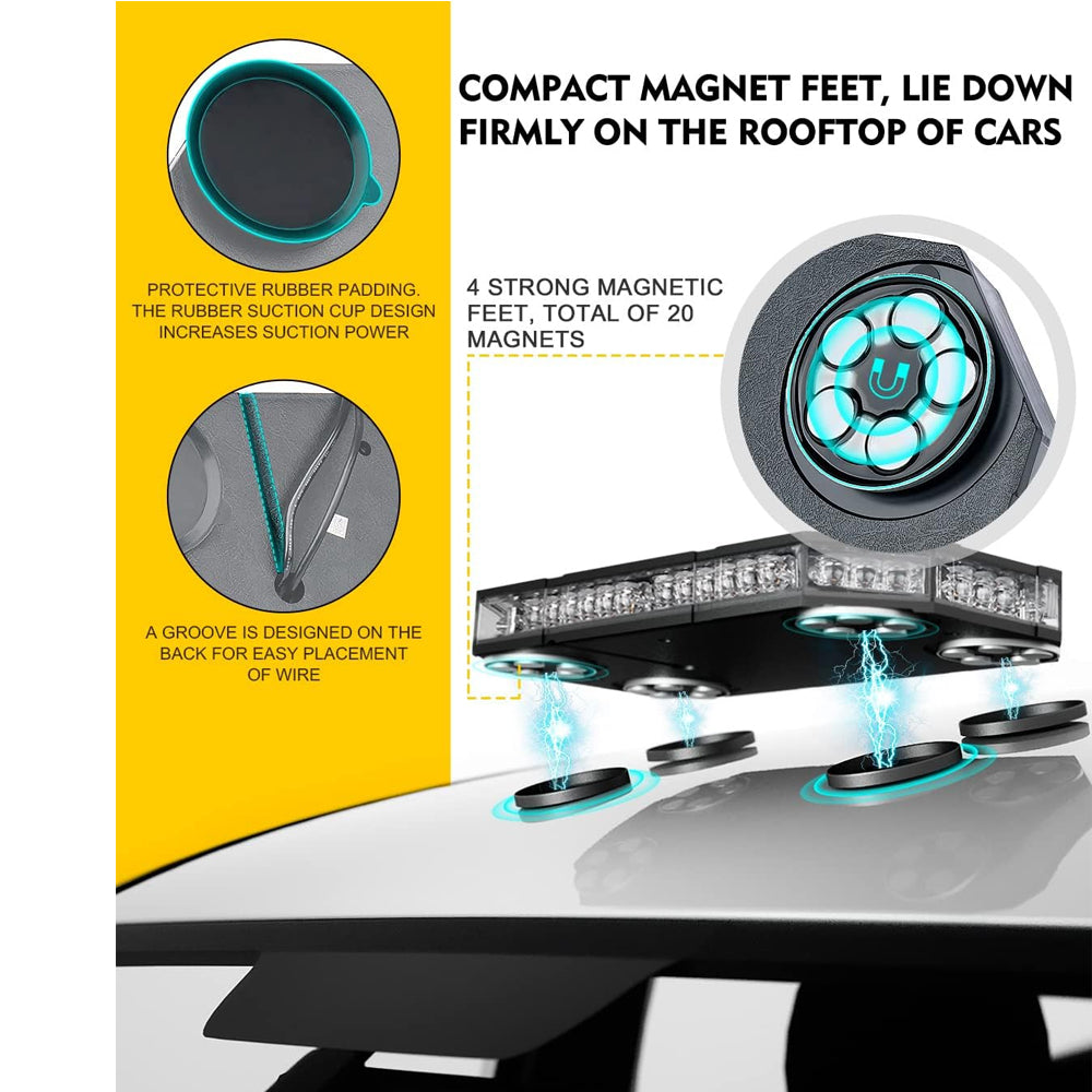 1. 38 different strobe modes.Strong magnetic ceiling bright warning flashing light, one click switch to multiple flashing modes