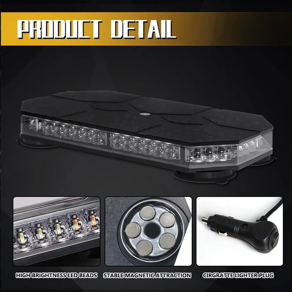 Amber/White LED Car Magnetic Rooftop Strobe Beacon Light Bar with Controller