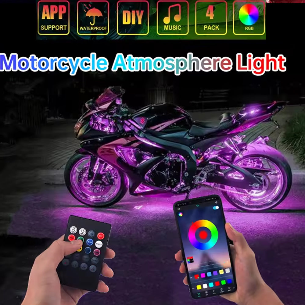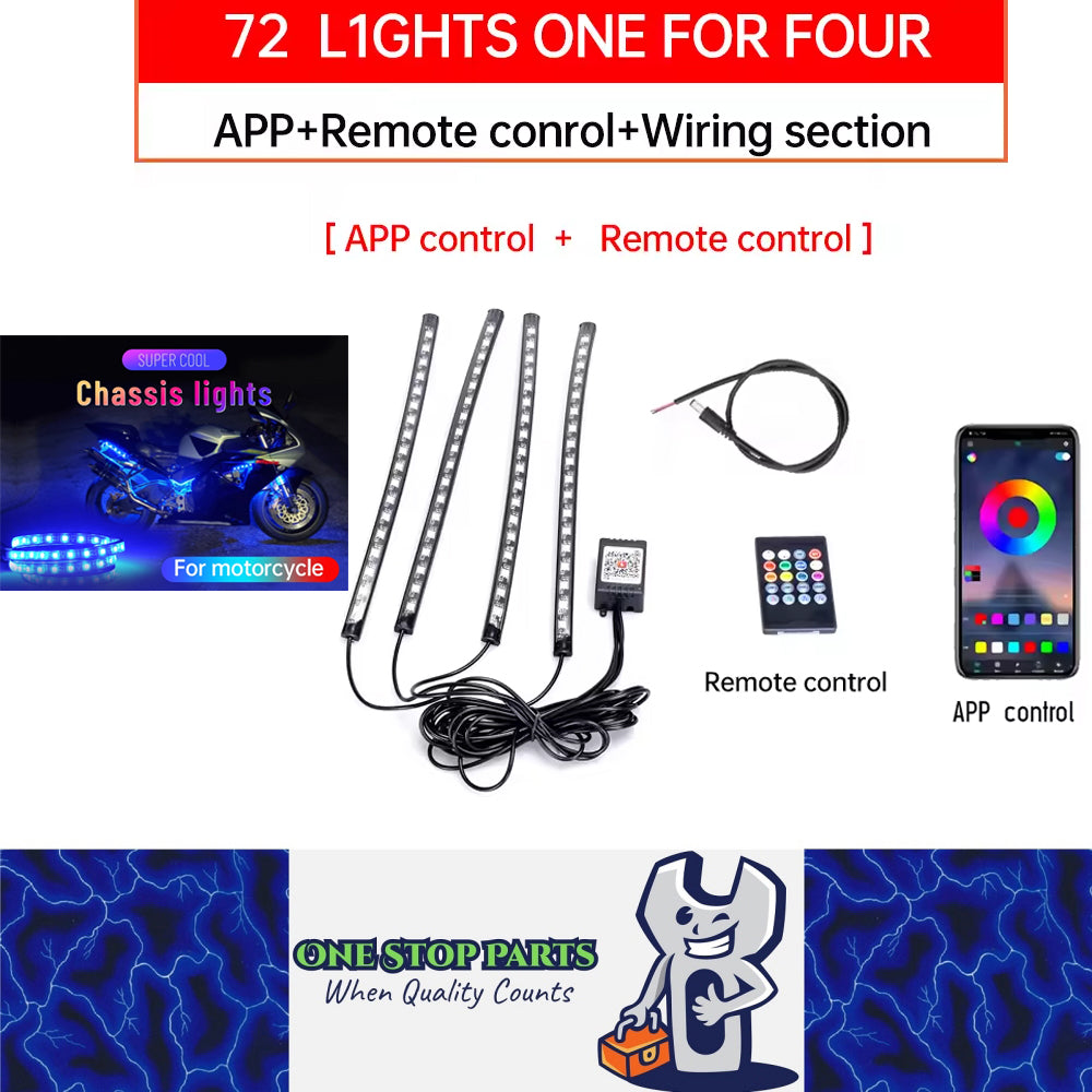 App+Remote Control 72LED Motorcycle LED Atmosphere Foot Flexible Strip Light