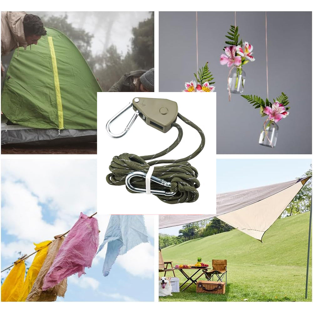* Widely Used: Rope ratchet are an ideal choice for hanging tents, carbon filters, ventilation equipment, and lighting fixtures. Adjustable rope hangers are also very suitable for hanging plant lamps, filters, aquarium lamps, fans, flower pots, mining lamps, etc. And you also can use as tie down straps for your kayak and canoe,or any medium weight cargo to the roof rack of car,trailer.
