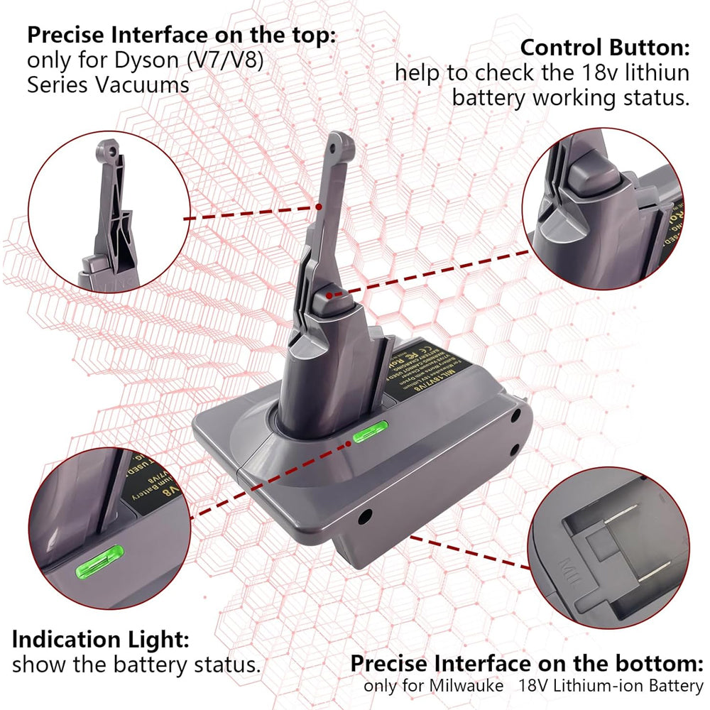 Battery Adapter for Milwauke 18V Battery for Dyson V7/V8 Series Vacuum Cleaner