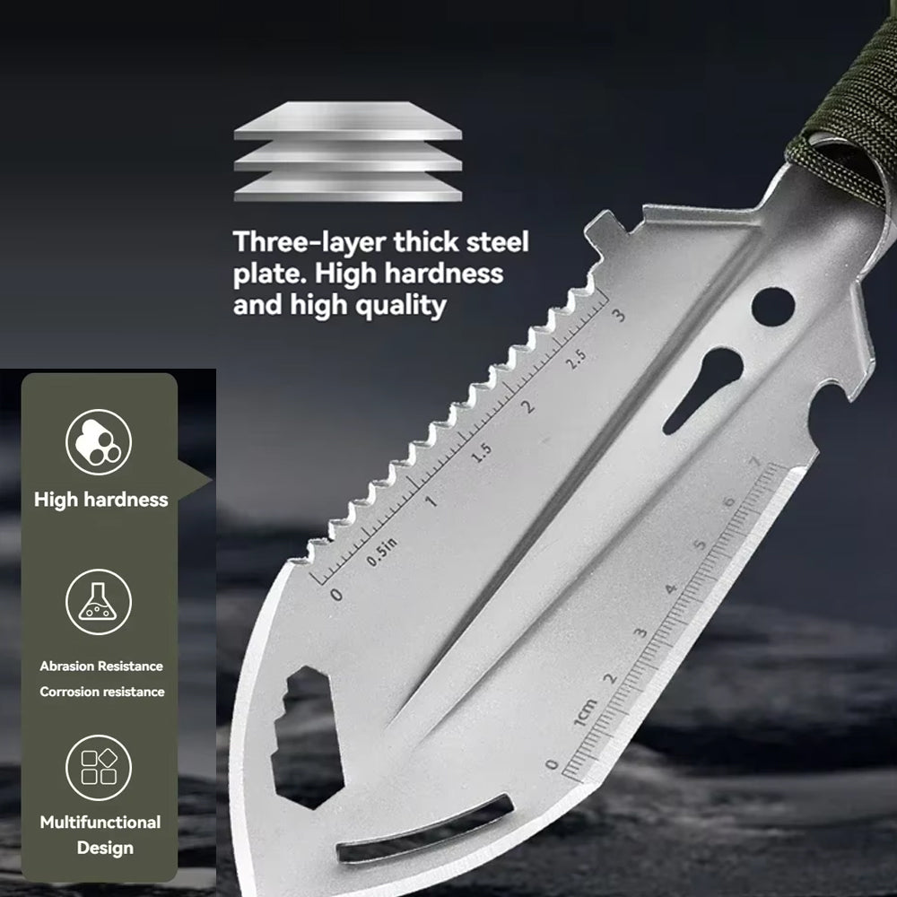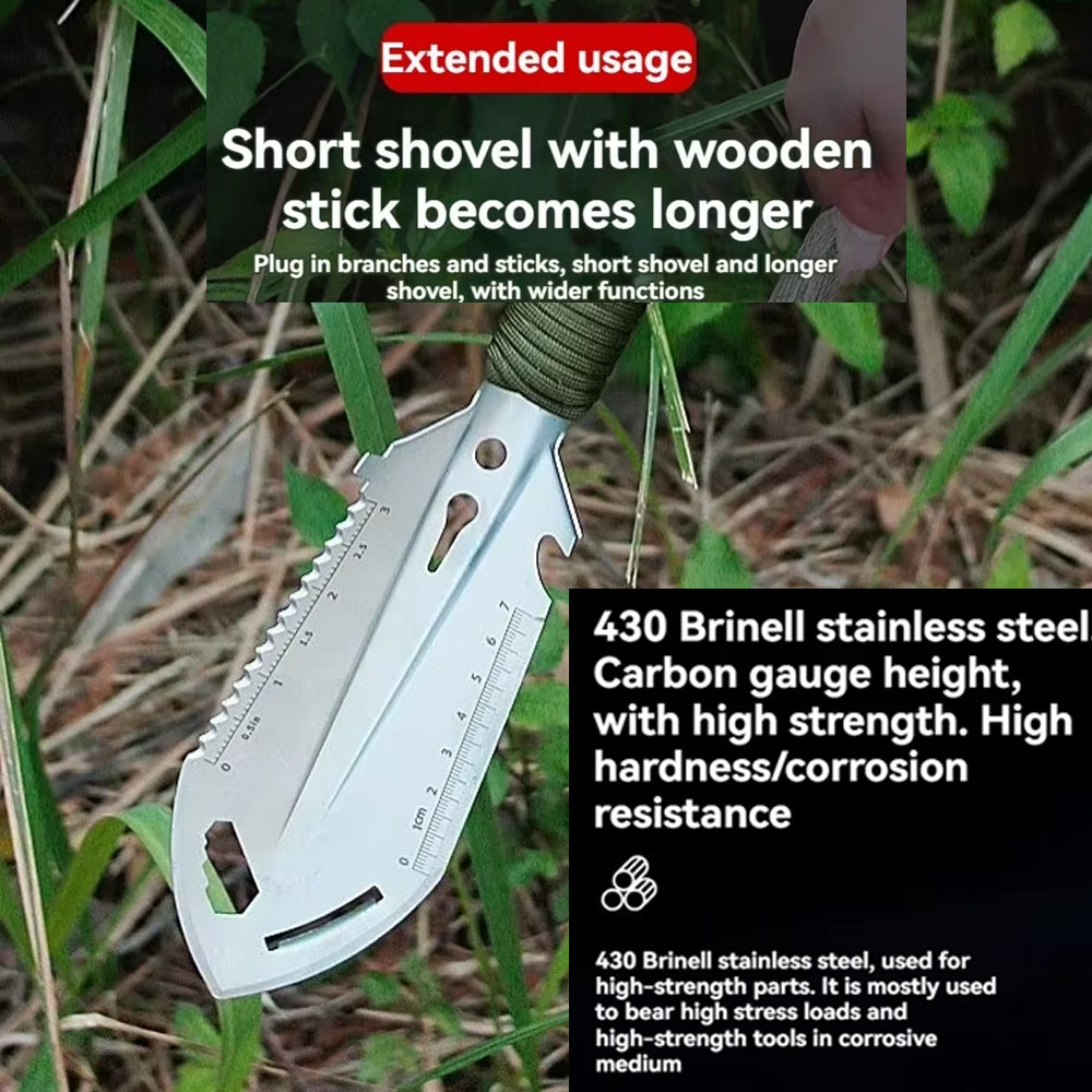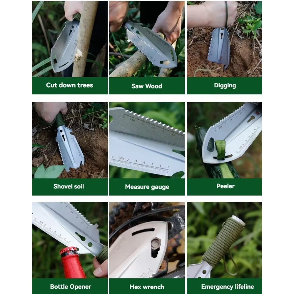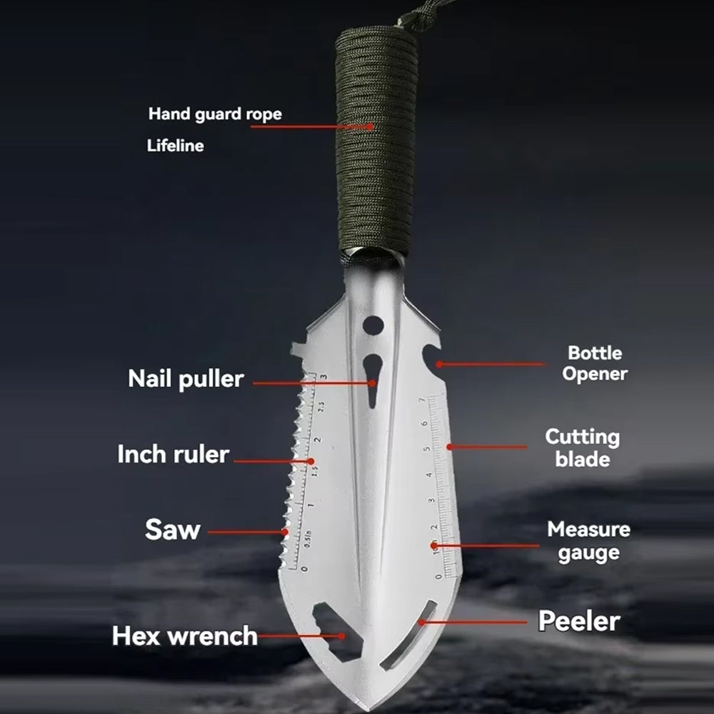 The 6-in-1 multi-purpose shovel can be used as a knife, saw, spearhead, shovel, hex wrench, nail puller, ruler, etc, to meet all your gardening or outdoor needs. The scale on the shovel can easily measure the digging depth so that you can plant it correctly.