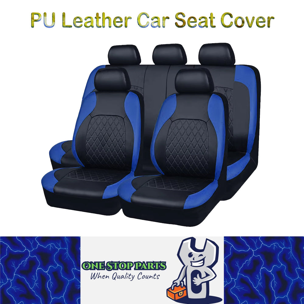 Blue PU Leather Car Seat Cover Full Surrounded Seat Protector Universal Size