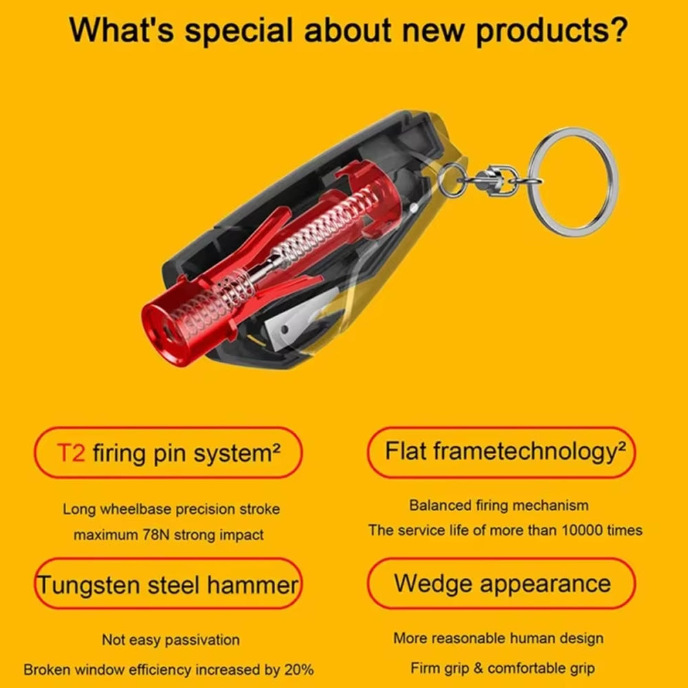 - Cut the seat belt : Pull out the escape device quickly from the key chain,then pull out the buckle,align the blade to the seat belt,cut it off quickly and get out of the emergency,