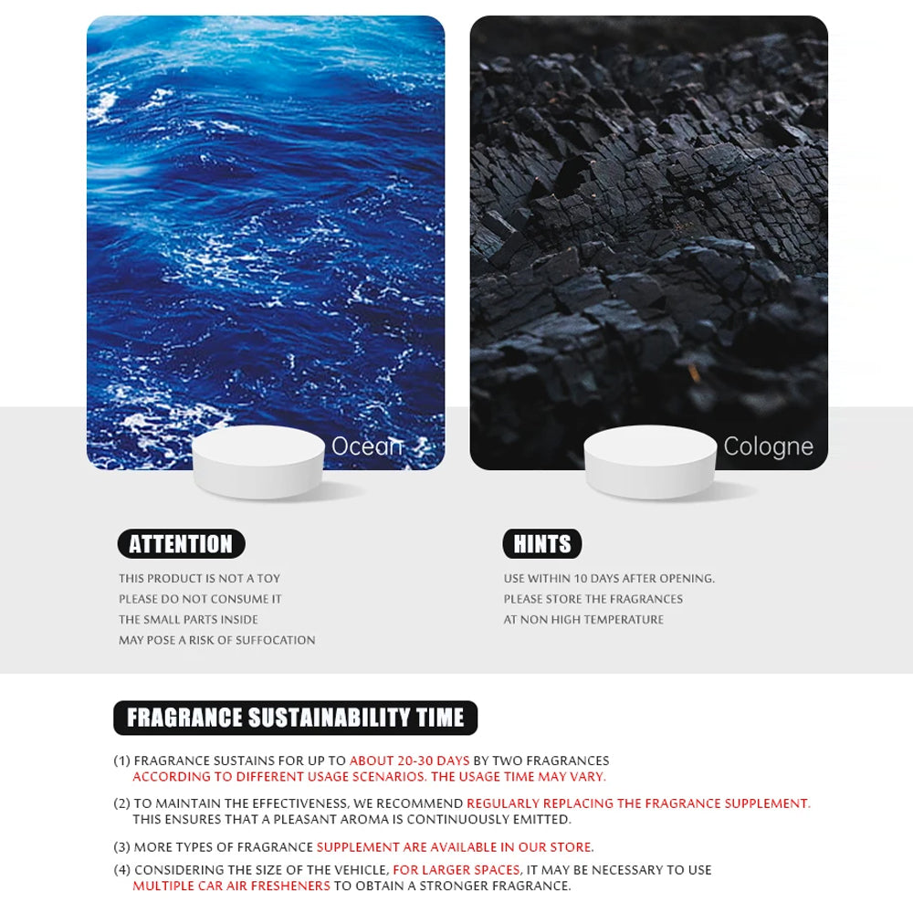 Enjoy a refreshing scents in your car with these reusable fragrance diffusers. The unique design allows the scents to linger, effectively removing odors and keeping your car smelling fresh for extended periods.