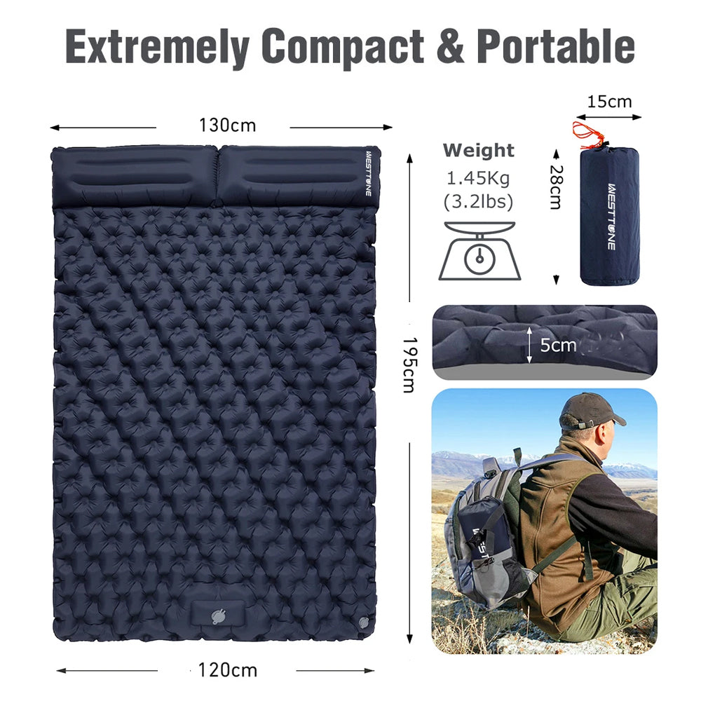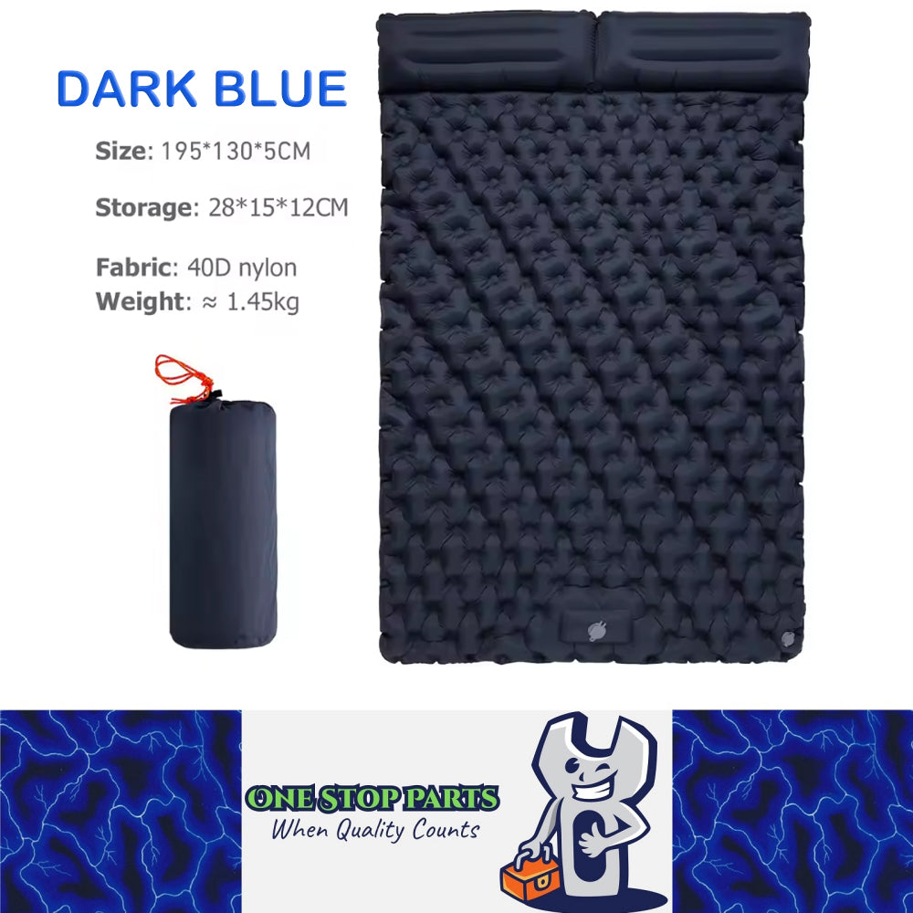 DarkBlue Outdoor DoubIe Inflatable Mattress with Pillow Sleeping Pad Camping Mat