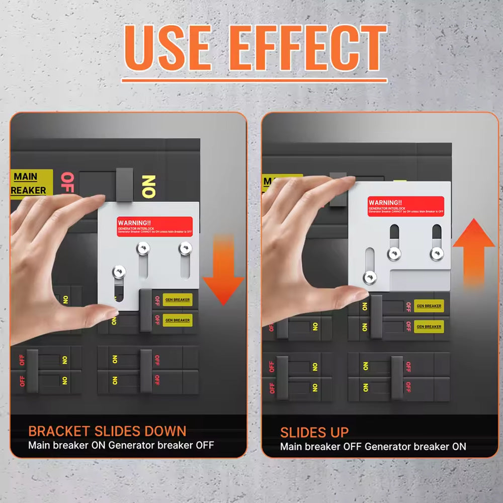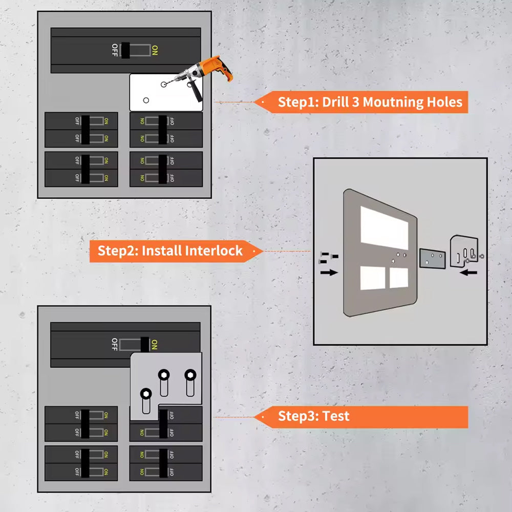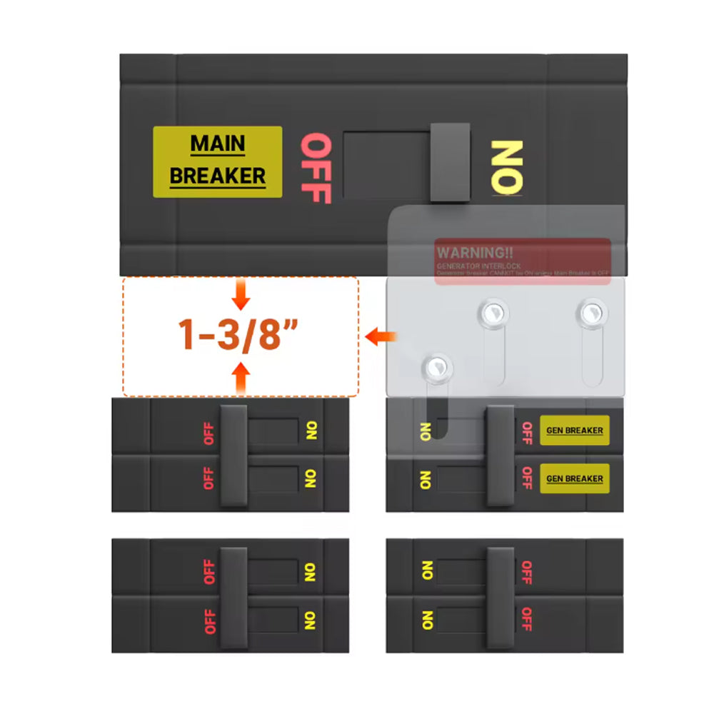Easy installation: 0.95cm[1-3/8 inch] gap between the main breaker and the generator breaker. The interlock kit is specifically designed for easy installation, with a 3/16 "drill bit that can easily penetrate your breaker panel.