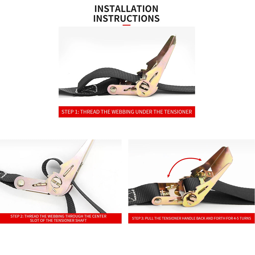 • No Hooks: The no hook design of the ratchet strap fits through areas where hooks might not fit. The no hook design can avoid scratching paint and metal.