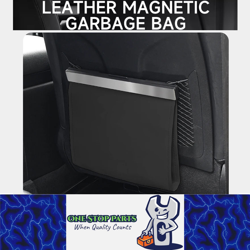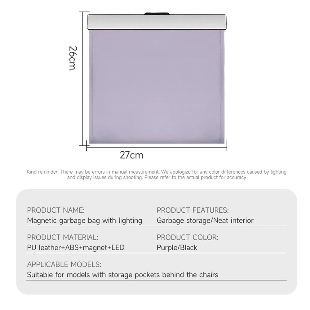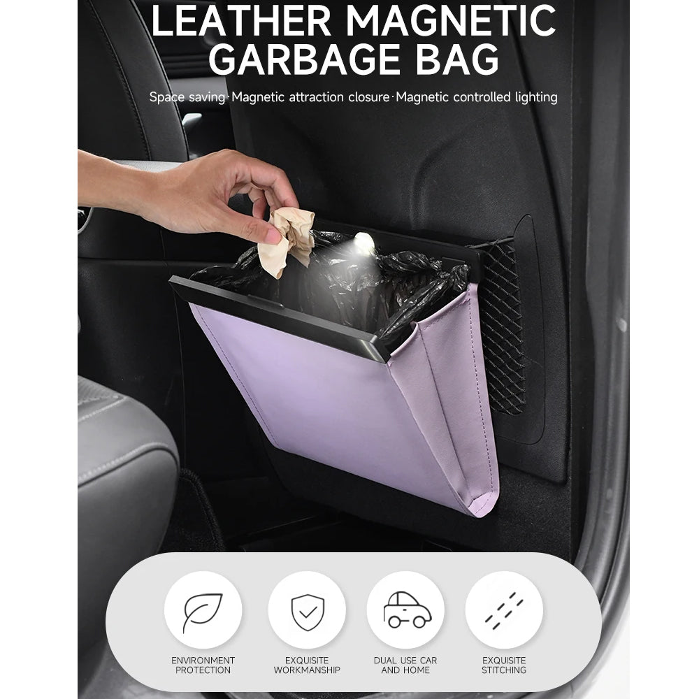 LED Magnetic Car Trash Bag PU Leather Waterproof Seat Hanging Car Garbage Can
