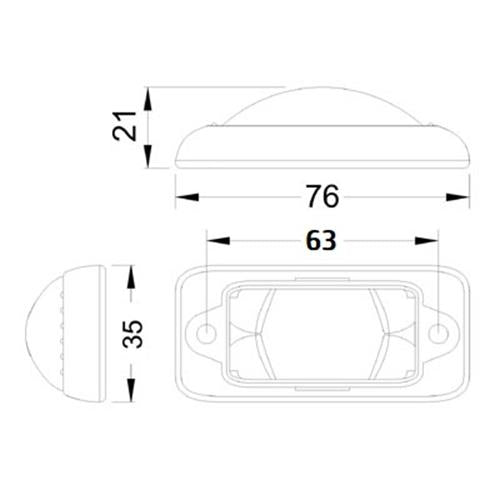 Amber/Red Side Marker Lamps 76mm x 35mm x 21mm each with 2 Piranha style LEDs, Black base, Polycarbonate deflector lens and each unit hard wired with cable