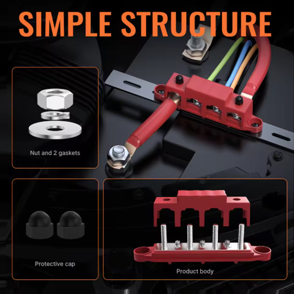 ★ Protect Cover & Nuts ★ - Each power busbar will come with a protect cover and two nuts, which helps to shelter as much exposed area as possible to reduce the risks of accidental contact and prevent short circuit, makes the circuit safer.