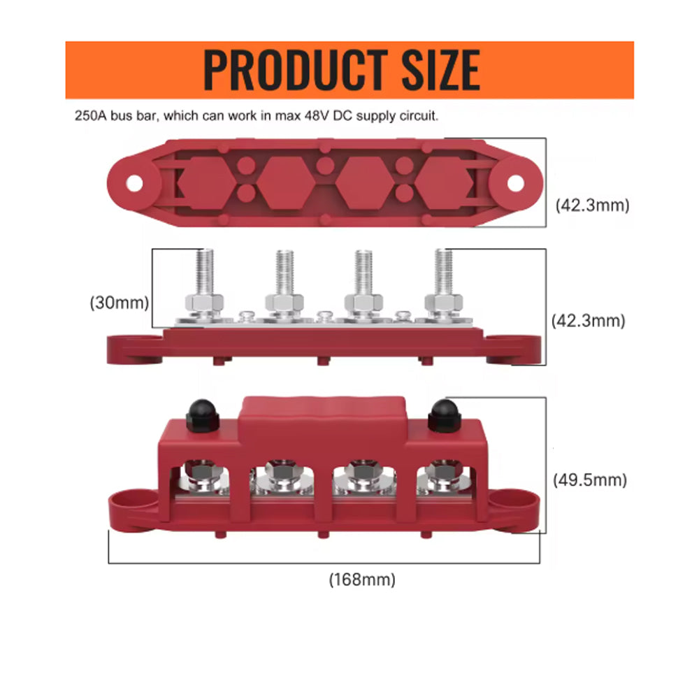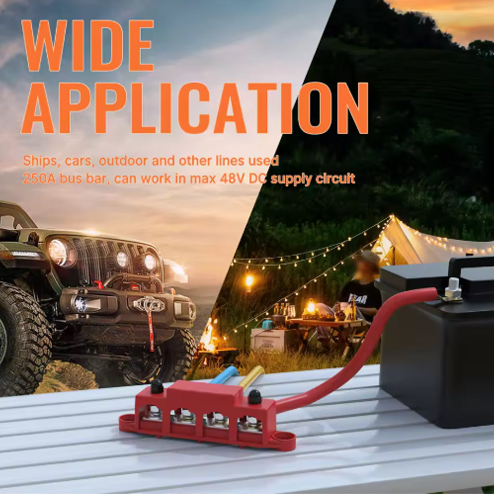 ★ 250A Rating ★ - The battery distribution block rated 250A when work in 12v circuit, and the battery terminal block can handle MAX 48V.