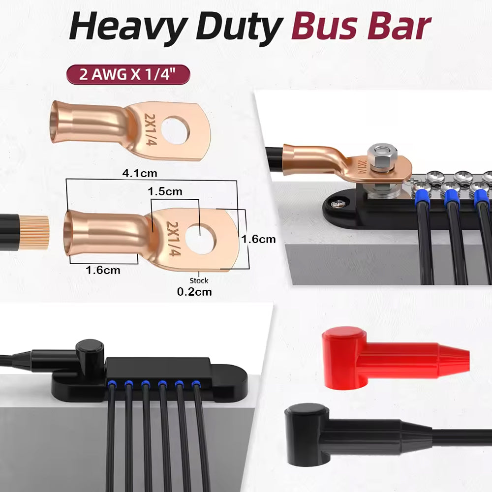 【Wide Application】Using the battery bus bar for wiring can keep the circuit neat and tidy, reducing the possibility of short circuit. Suitable for car, caravan, boat, yacht, solar system, etc.