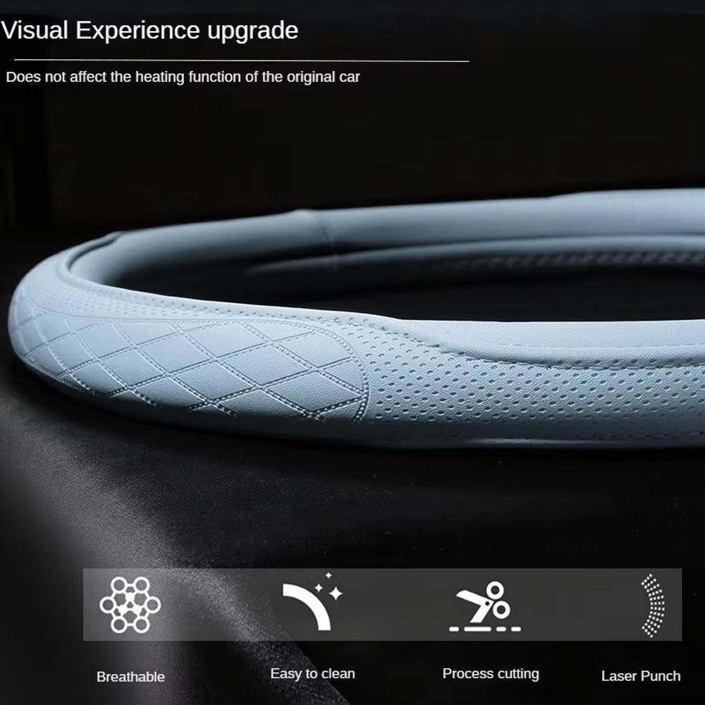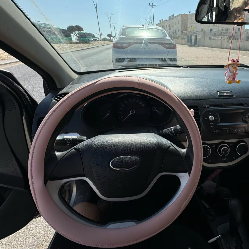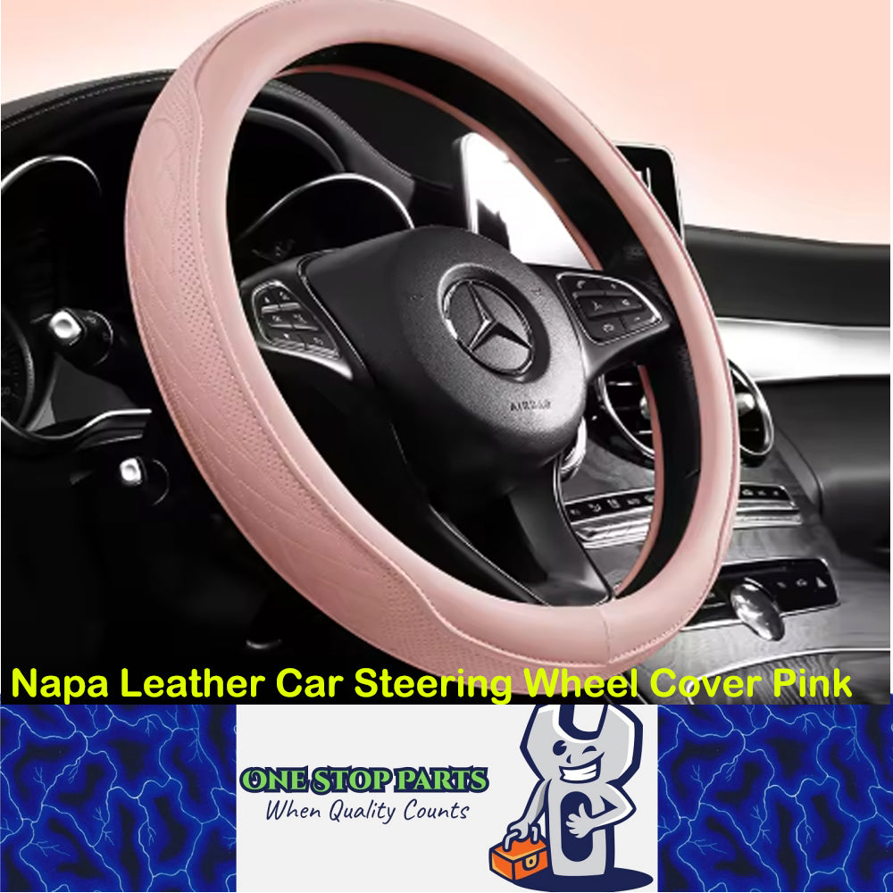 Napa Leather Car Steering Wheel Cover Universal 38cm Non-slip Breathable Pink