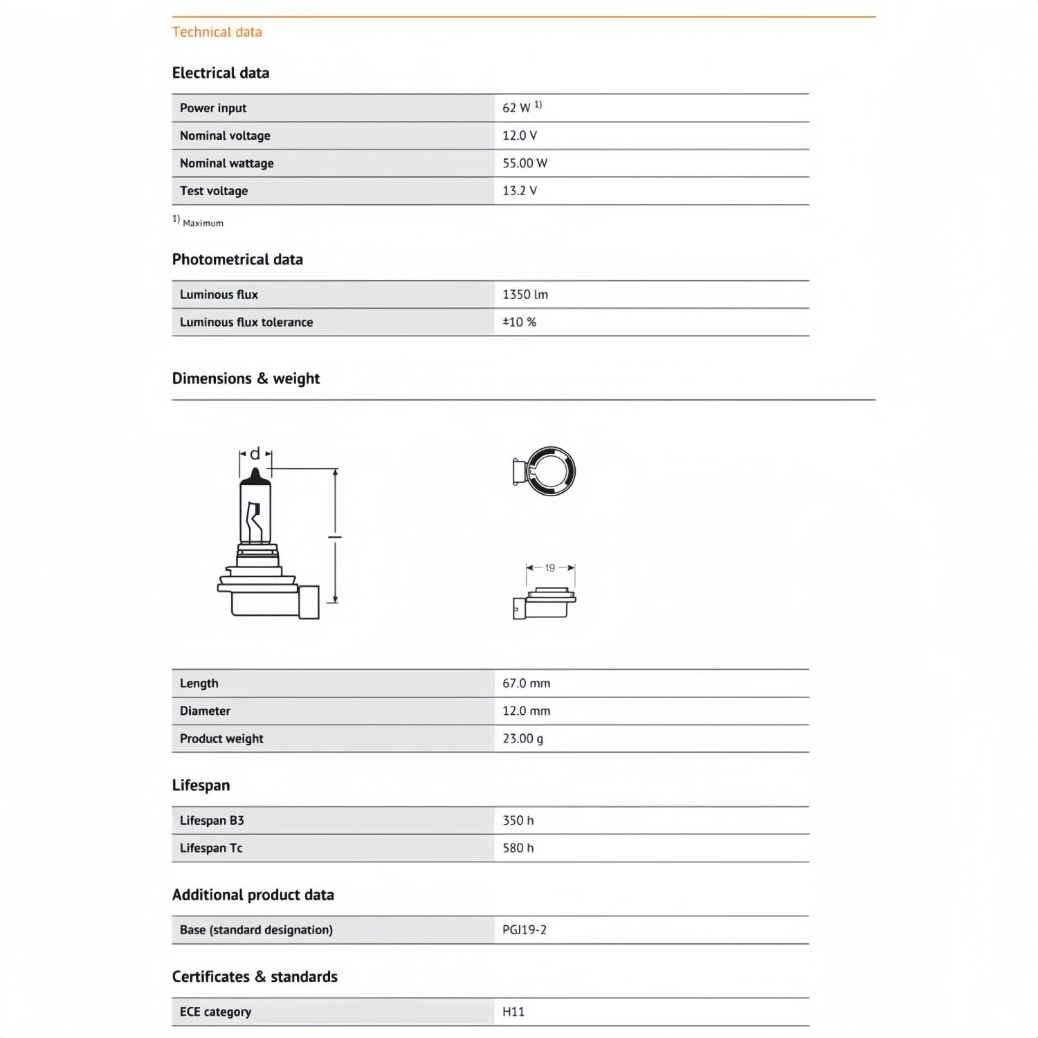 OSRAM H11 12V 55W Halogen Headlight Bulbs 3200K Globes 64211 OEM Made in Germany