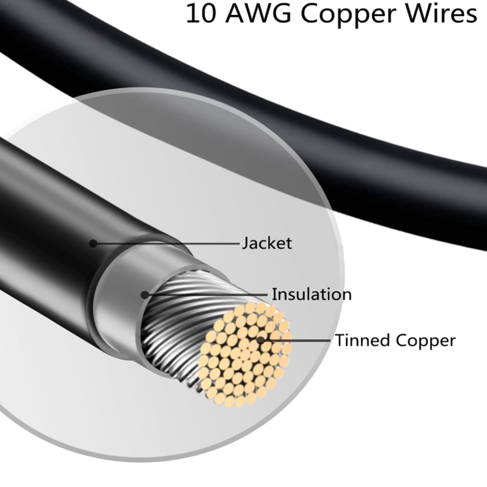 *Ideal Application: The wire of the solar cable is made of copper for low resistance that minimizes power loss in your solar panel system. Meanwhile, the solar cable is moisture, UV, and corrosion resistance. Engineered for long life and outdoor applications.