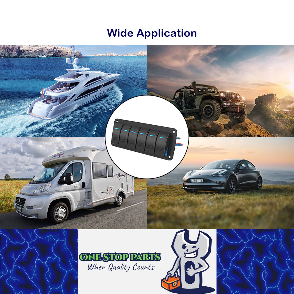Pre-wired 6 Gang Blue LED Rocker Switch Panel 12-24V for Car Caravan Boat Marine