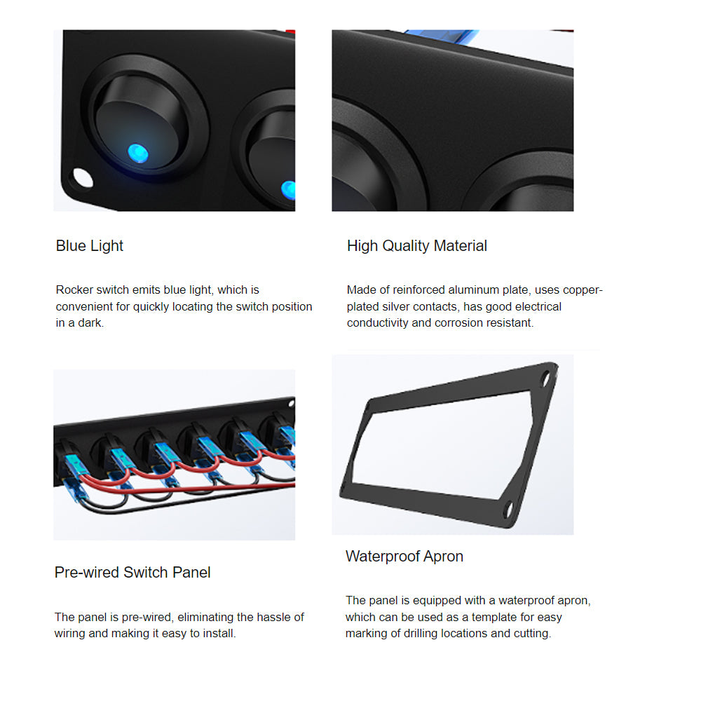 【High Quality Material】This truck rocker switch panel is made of high-quality strengthened aluminum, uses copper-plated silver contacts, has good electrical conductivity, which is corrosion resistant, strong flame retardant and durable.